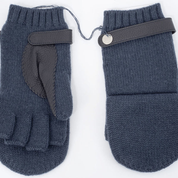 Hermes Lionel Fingerless Cashmere Blue Noir Men\'s L Mittens H162052G 5HL HERMES
