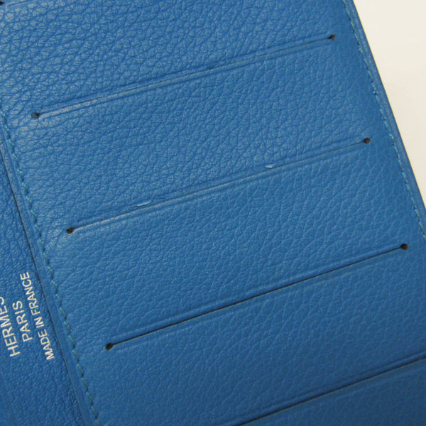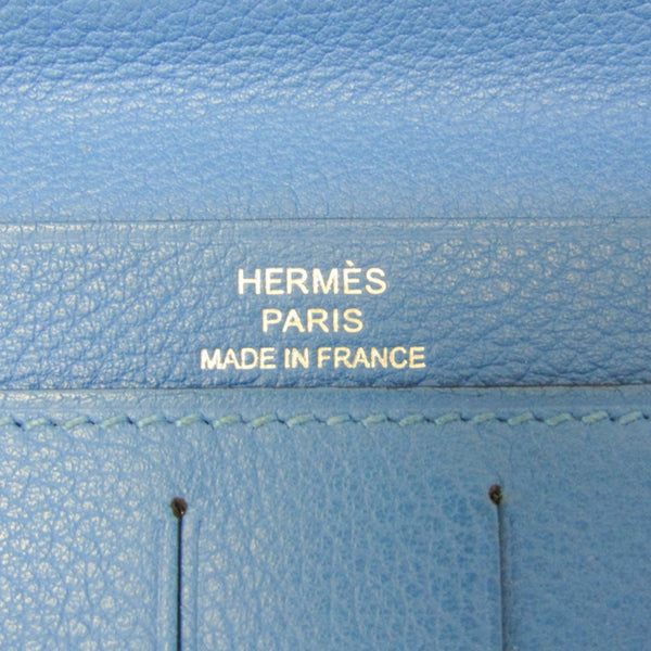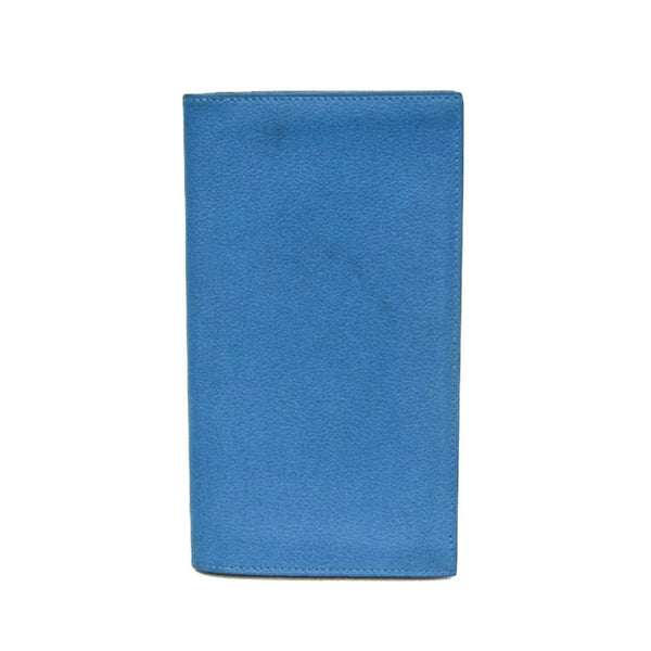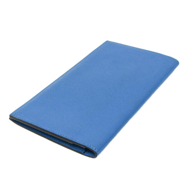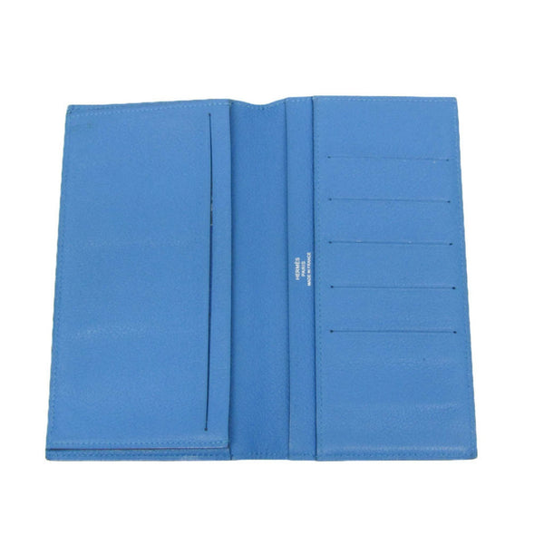 Hermes MC2 Fleming Silk Inn Men,Women Chevre Leather Long Bill Wallet (bi-fold) Blue