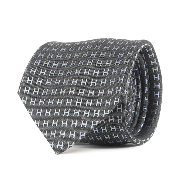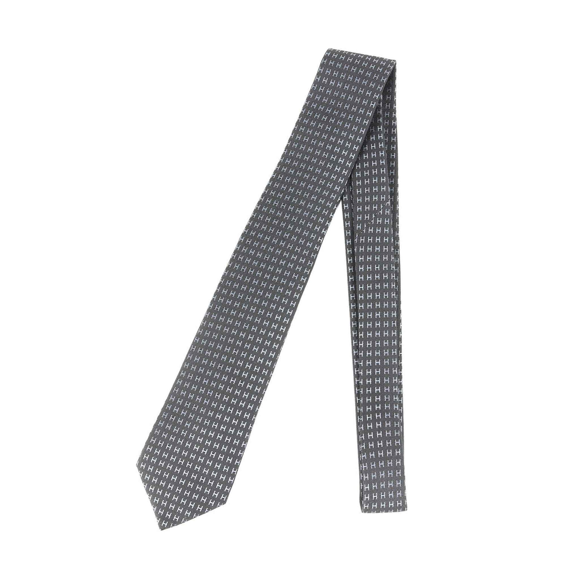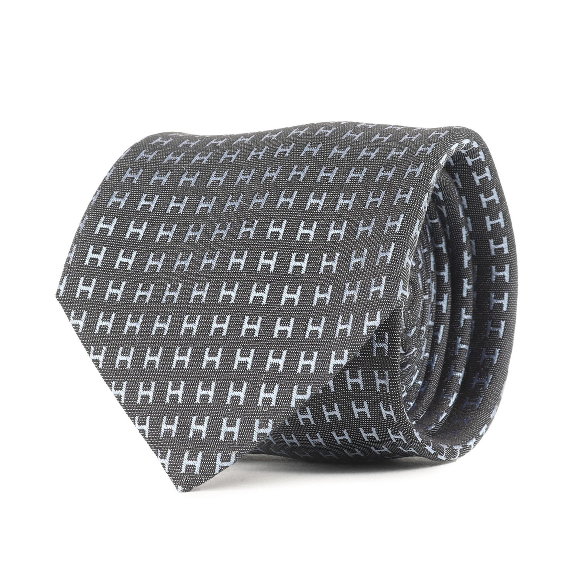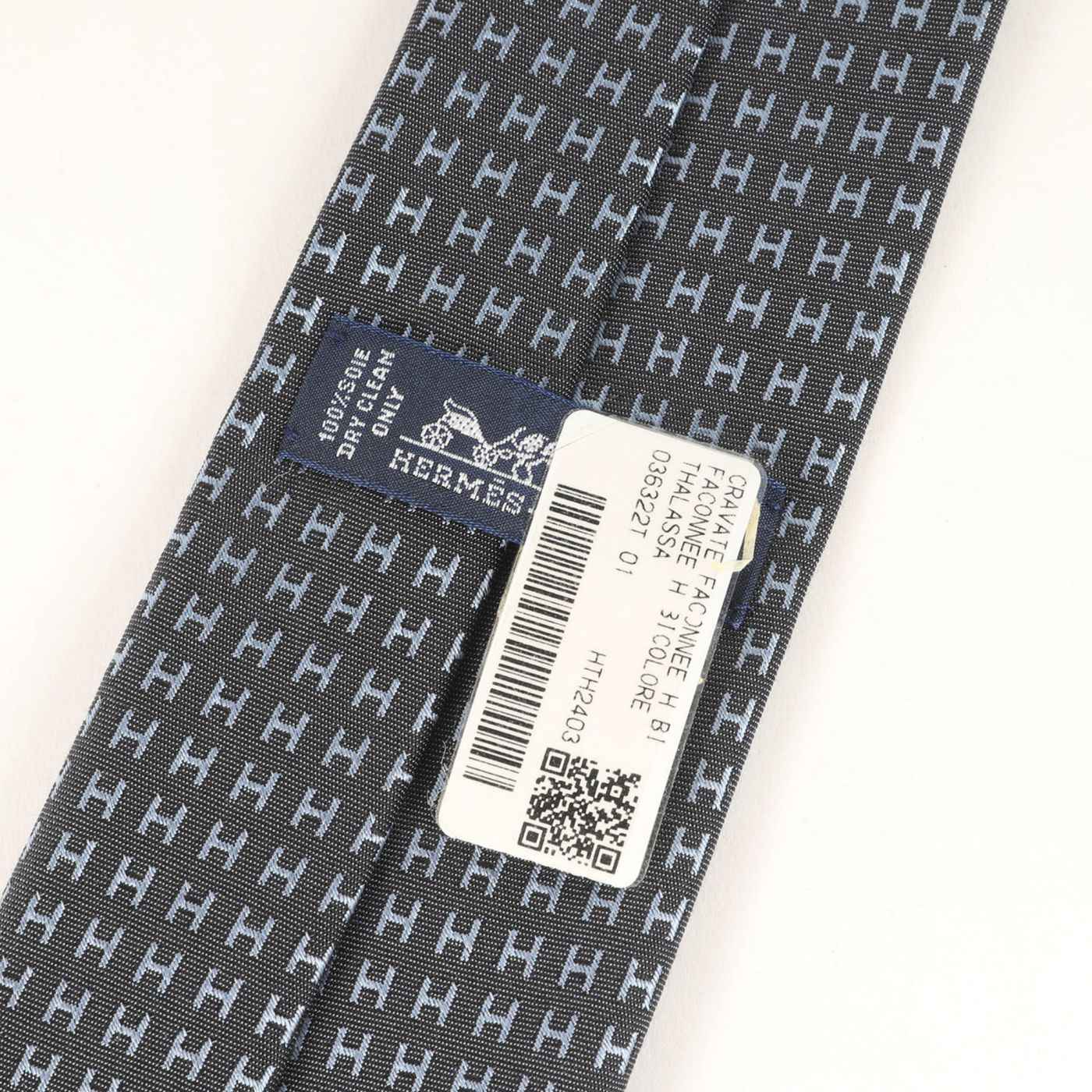 HERMES Men\'s H Jacquard Silk Tie (Fasone 036322T) 24AW Current Model with Thalassa Blue Belt, 7cm Wide (K4613)