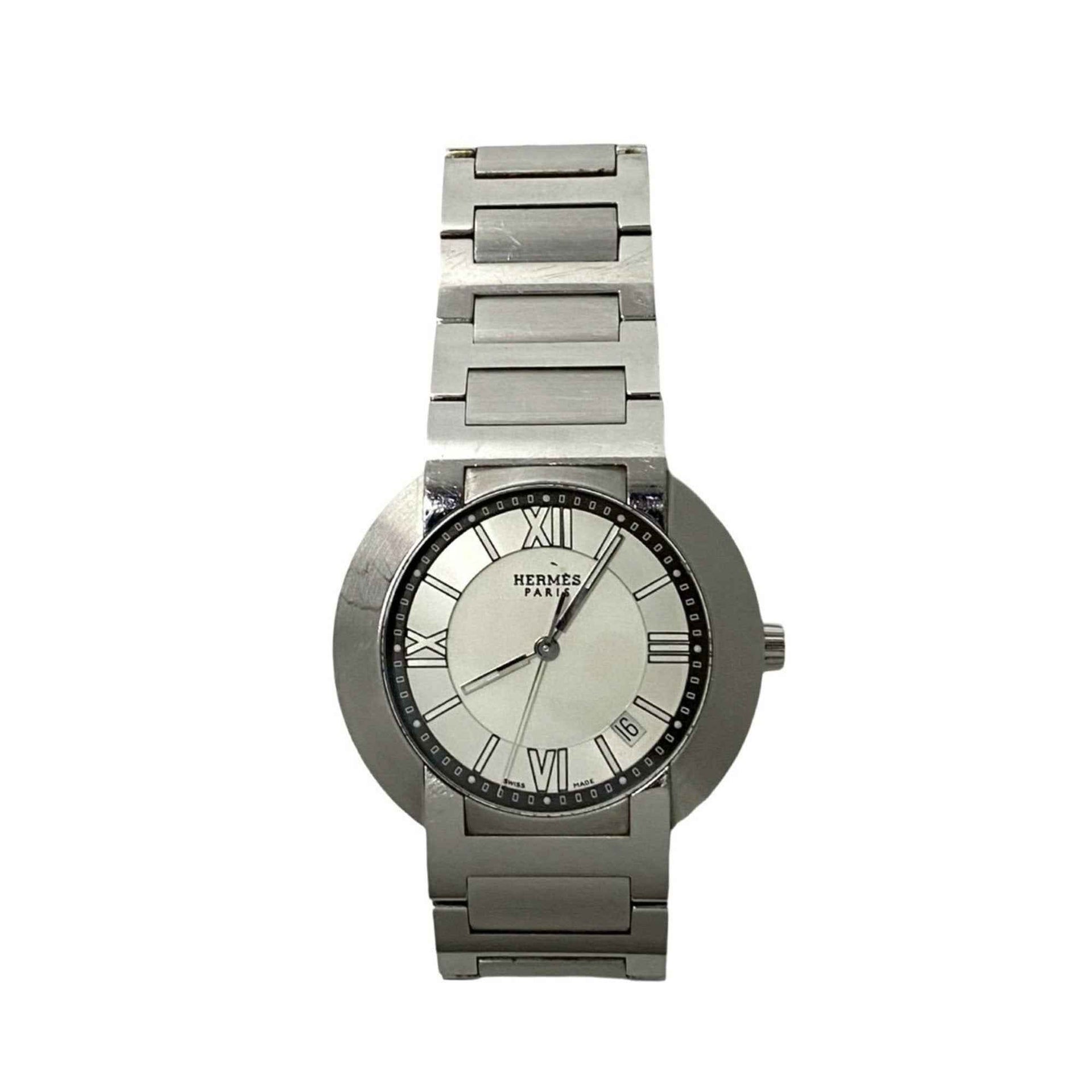 HERMES Nomade Stainless Steel Auto-Quartz Wristwatch, Men\'s Accessory, Silver/White, 31736