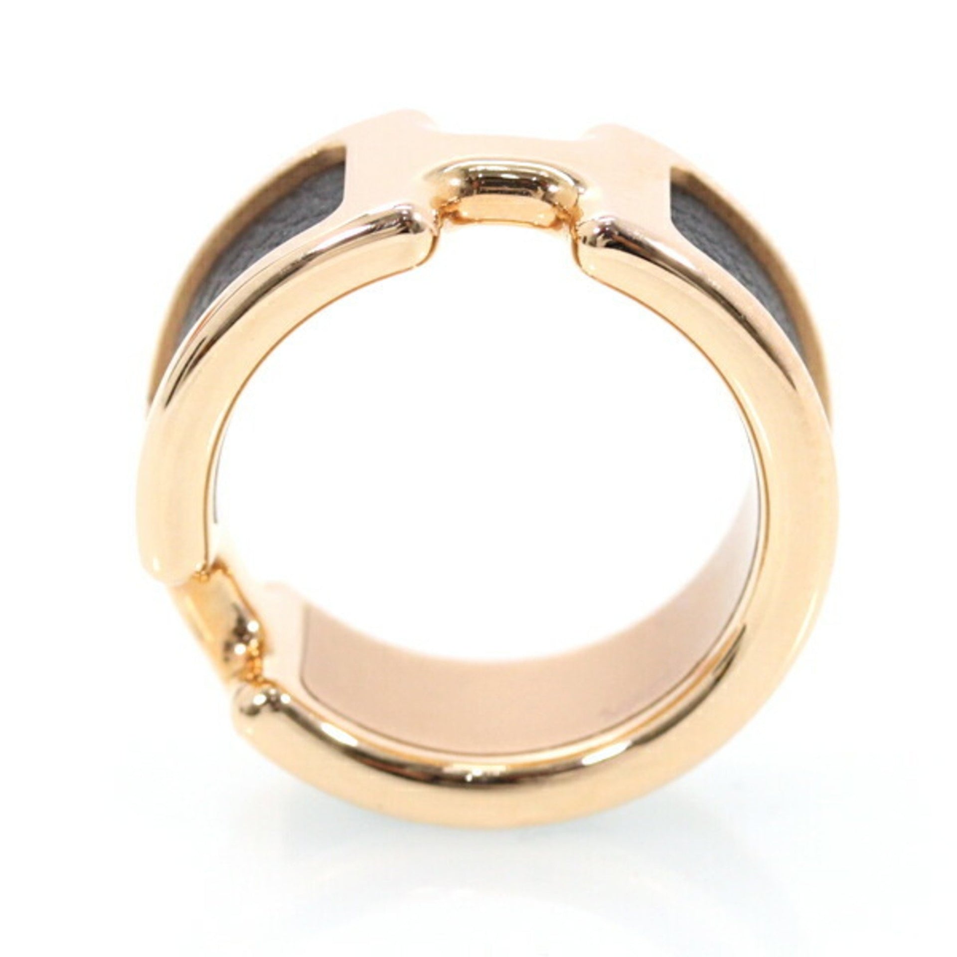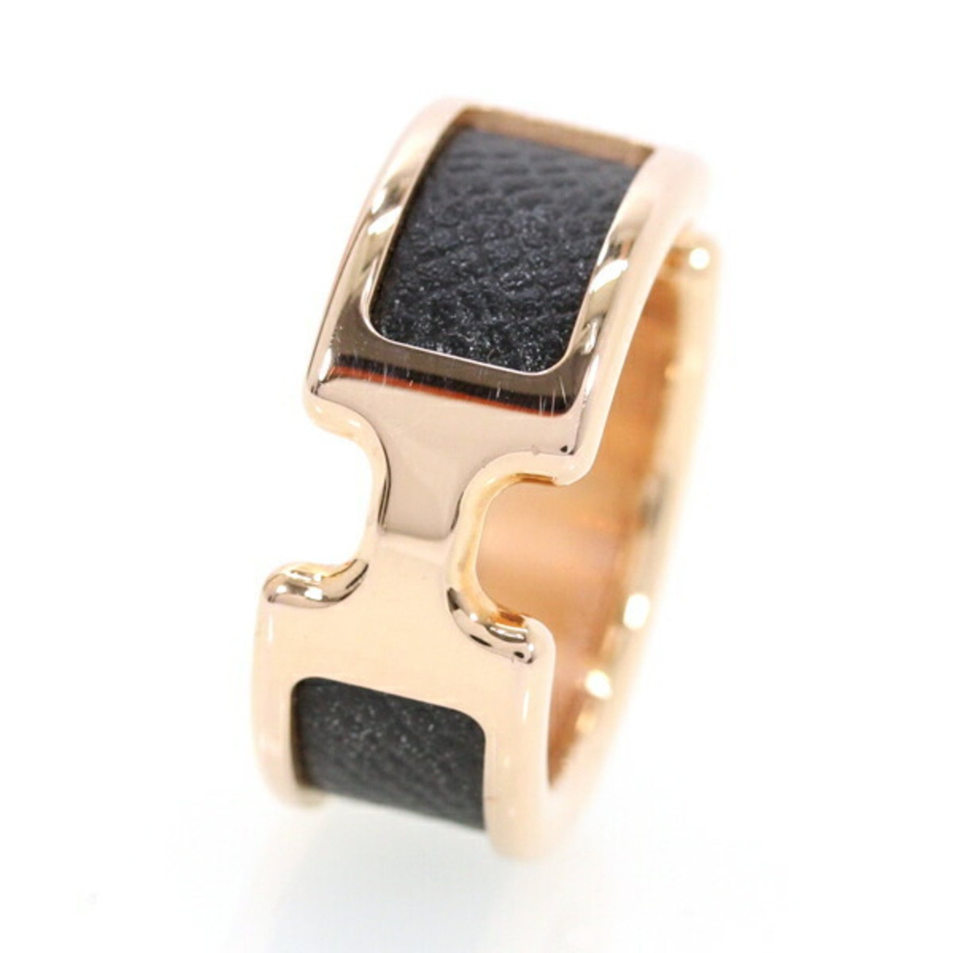Hermès Olympe PM Ring, Medium, Pink Gold GP, Black Veau Madame Leather, HERMES Women\'s MO1058