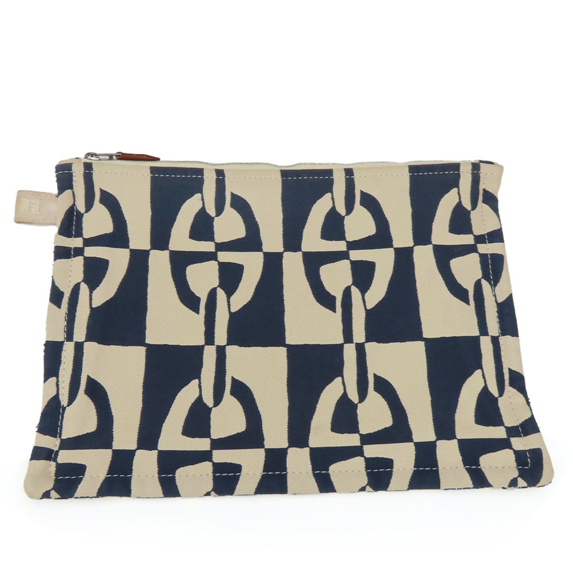 Hermes Pouch Truss Flat GM Chaine d\'Ancre Canvas Navy Ivory Clutch Bag Women\'s HERMES