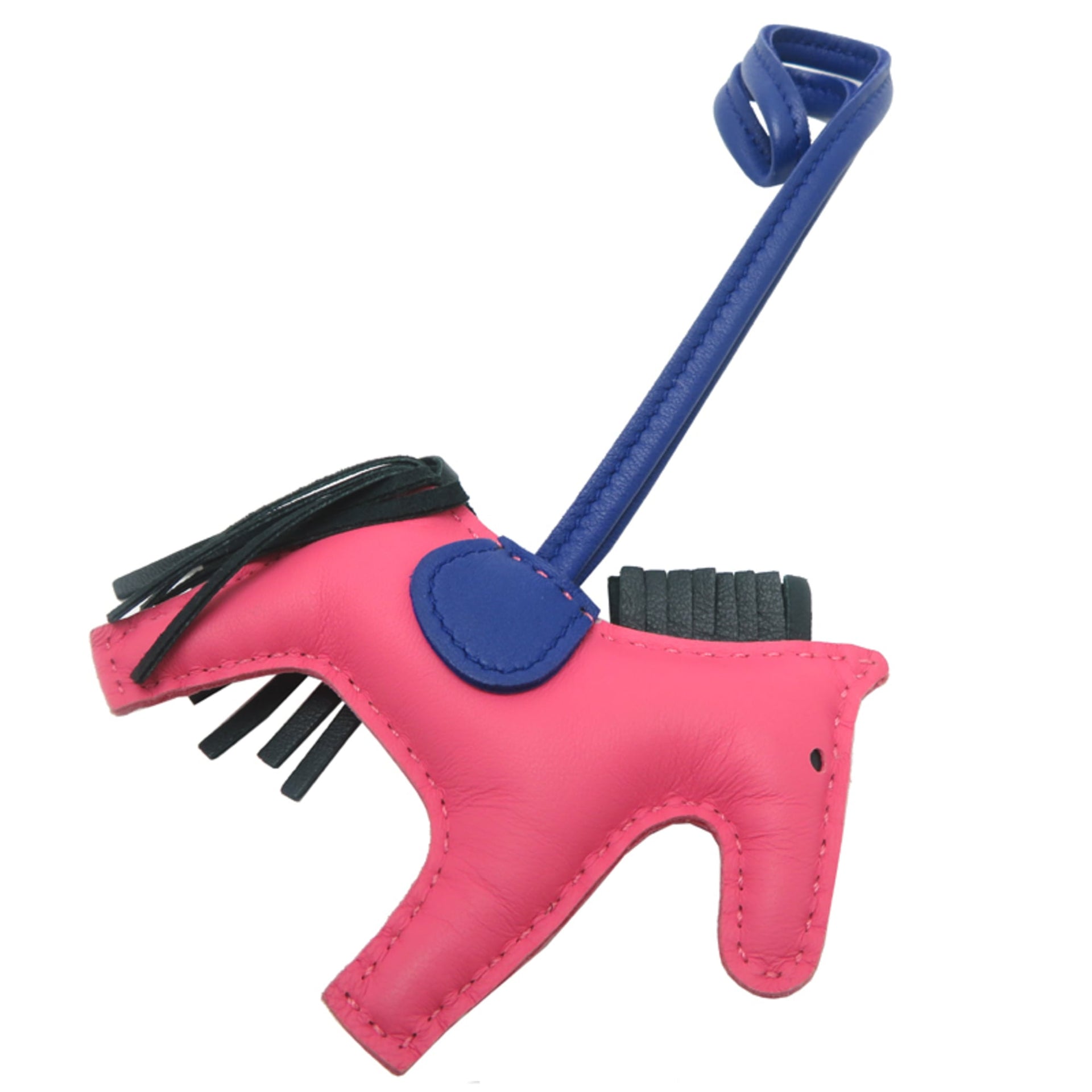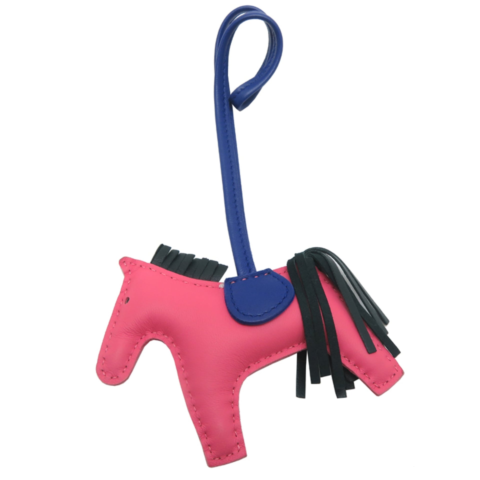 Hermes Rodeo MM A stamp women\'s/men\'s charm, Agneau Milo, Rose Azalee, Blue Electric, Vert Cypress