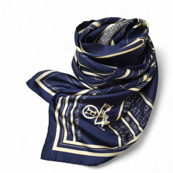 Hermes Scarf Shawl Carré 140 HERMES Silk Petit Duc PPetit Navy