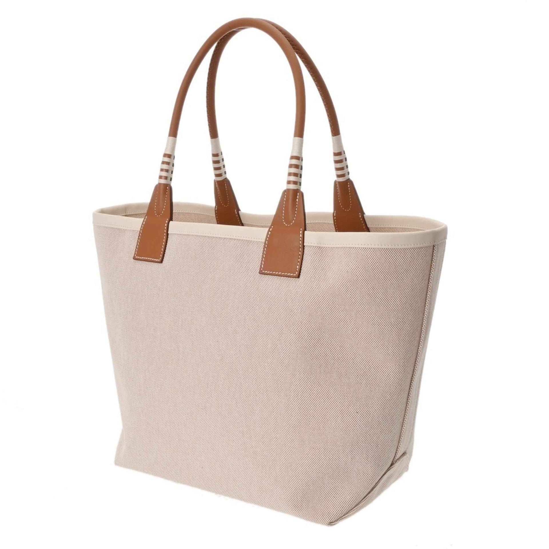 HERMES Steeple 28 Ecru/Gold B Stamp (circa 2023) Women\'s Toile/Swift Handbag, Like New