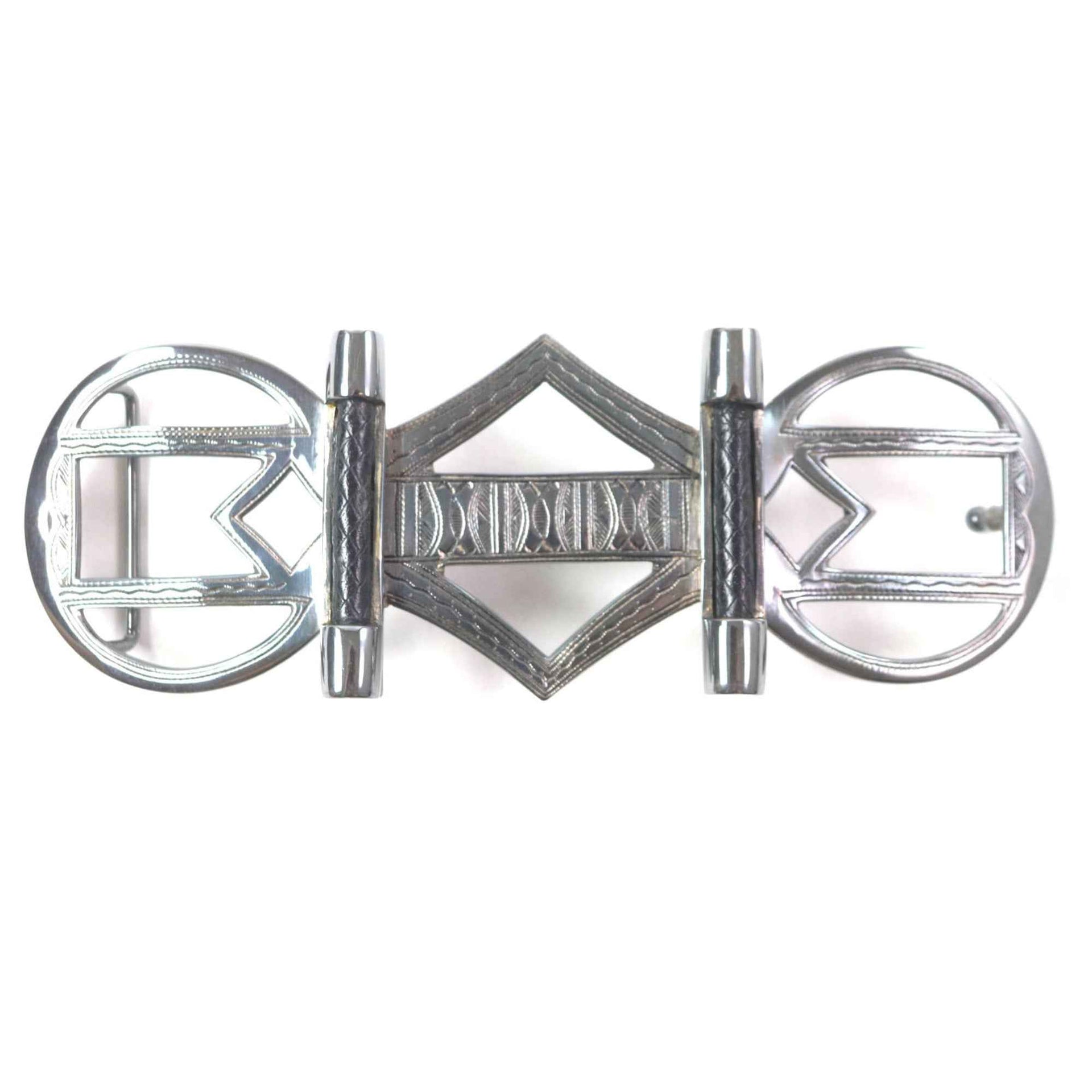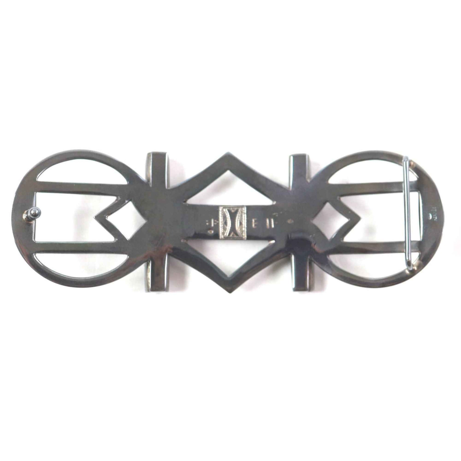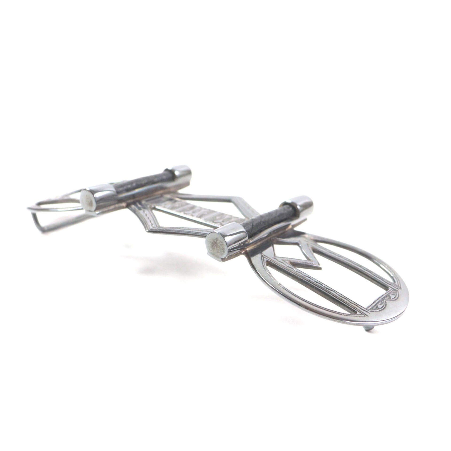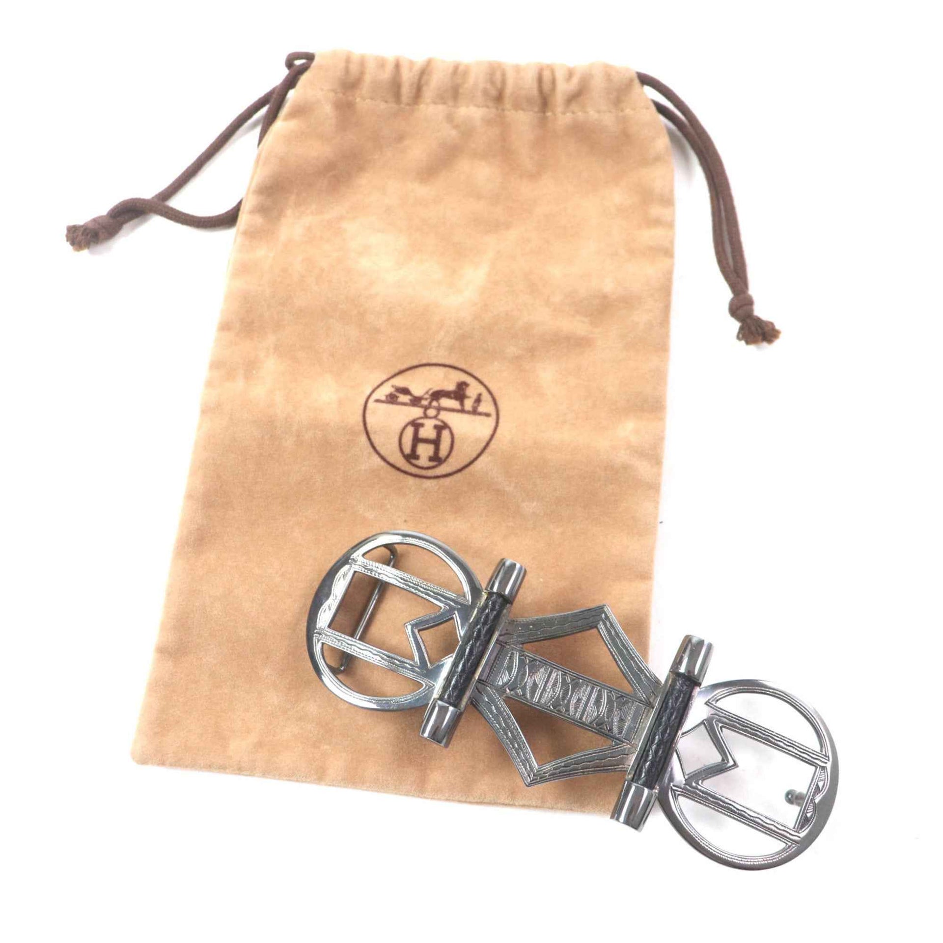 HERMES Touareg Belt Buckle with Hand-Engraved Chrome-Colored Leather. Made of 925 Sterling Silver. Gunmetallic finish. Includes dust bag. Weight: 74.7g. Men\'s.