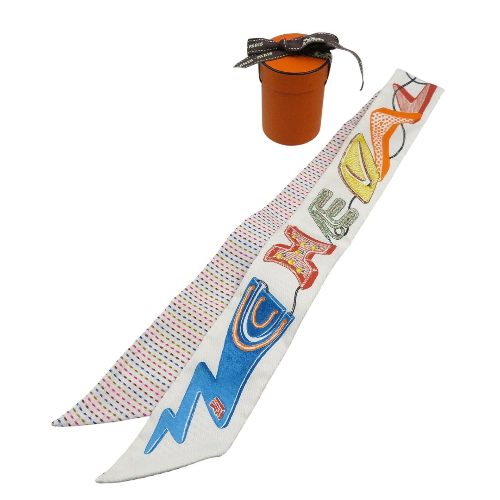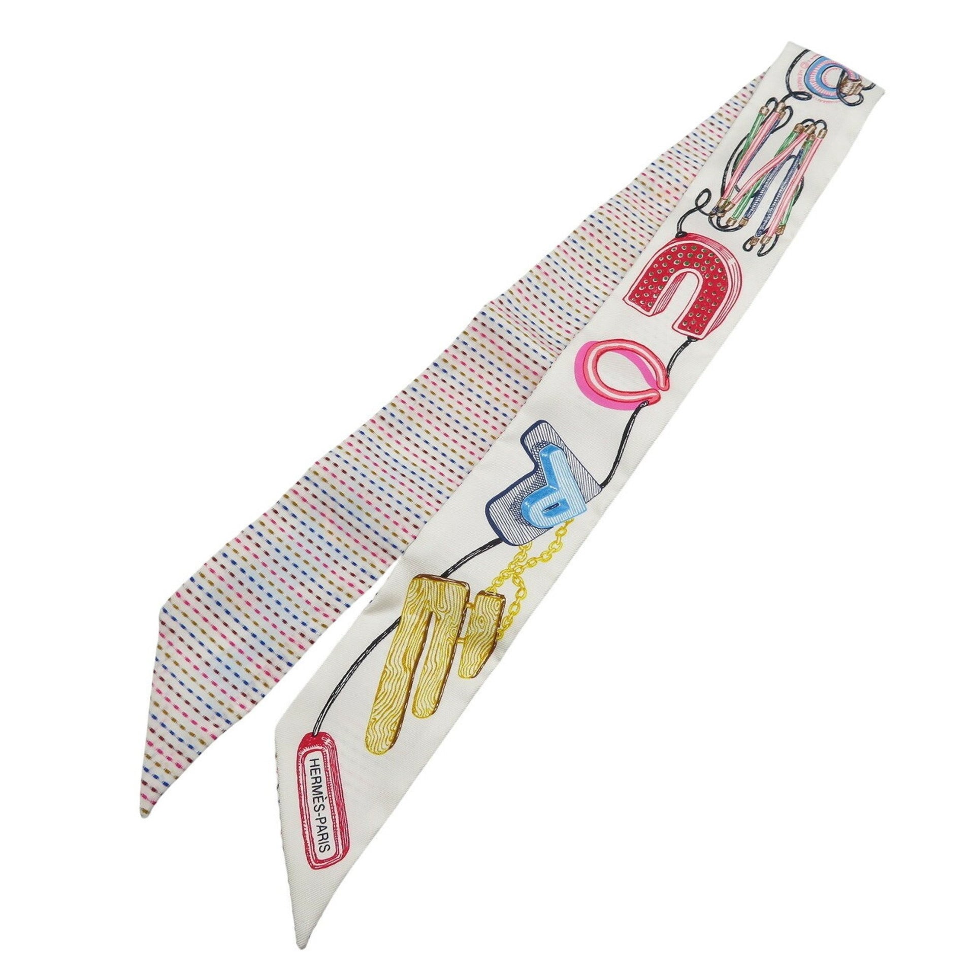Hermes Twilly Chevroscope Neon Pointier 853954S Silk Blanc Rose Vert Scarf Muffler 1227HERMES