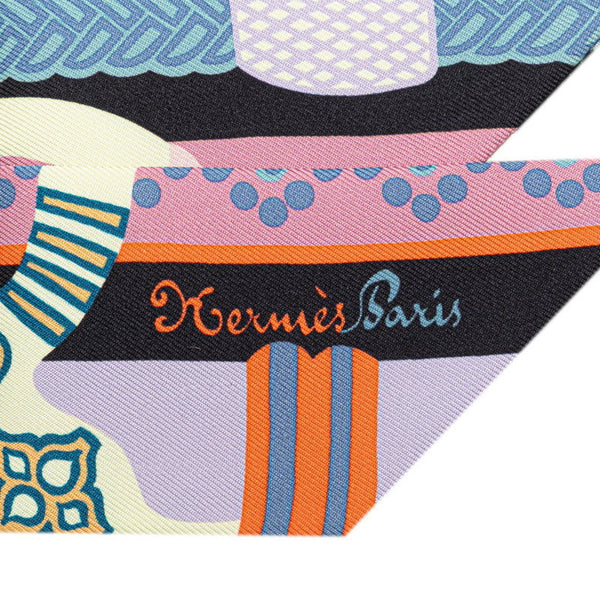 Hermes Twilly Fantaisie d\'Etriers Armor Fantasy Marine Scarf Muffler Black Multicolor Silk Women\'s HERMES