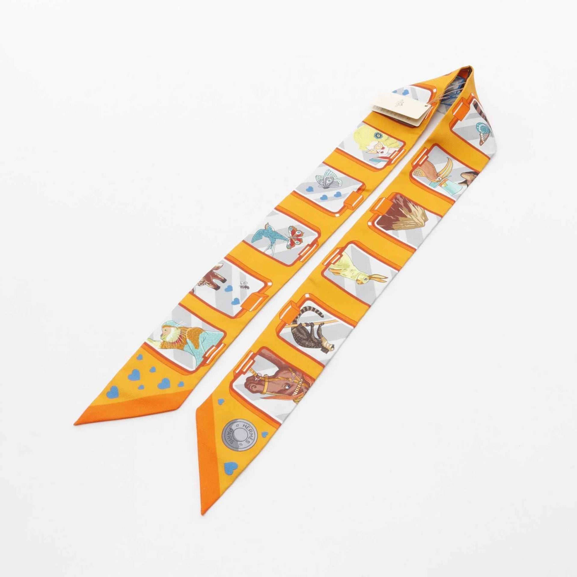 Hermès Twilly HERMES STORY Silk Scarf for Women in Orange Multicolor
