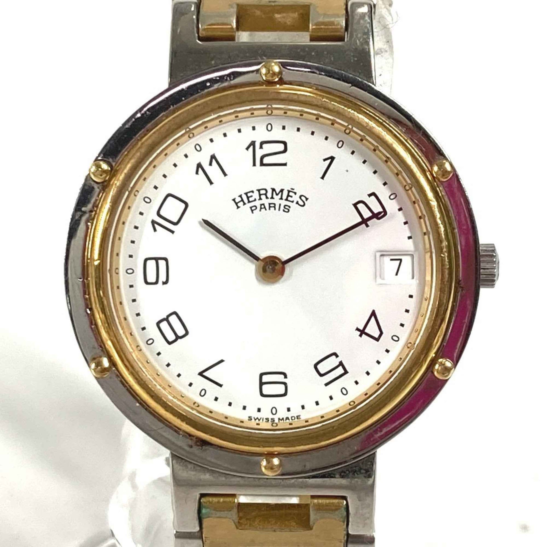 HERMES Vintage Clipper Watch, Combi, SS GP, Men\'s, Silver