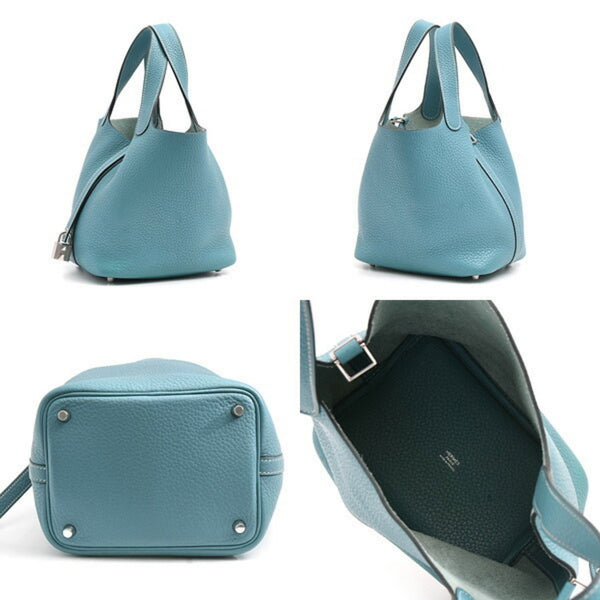 Hermes Women's Picotin Lock PM R engraved Taurillon Clemence Blue Jean HERMES