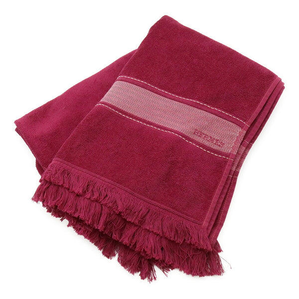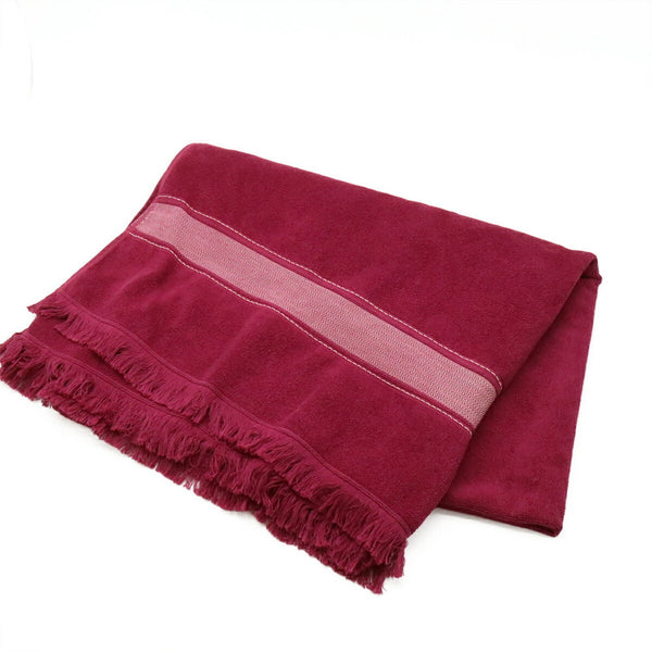 HERMES Yachting Bath Towel, Beach Mat, 100% Cotton, Wine Red