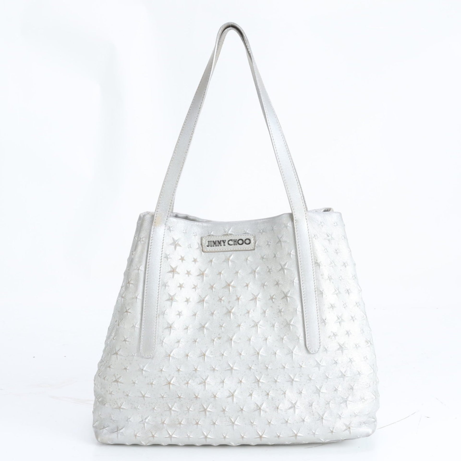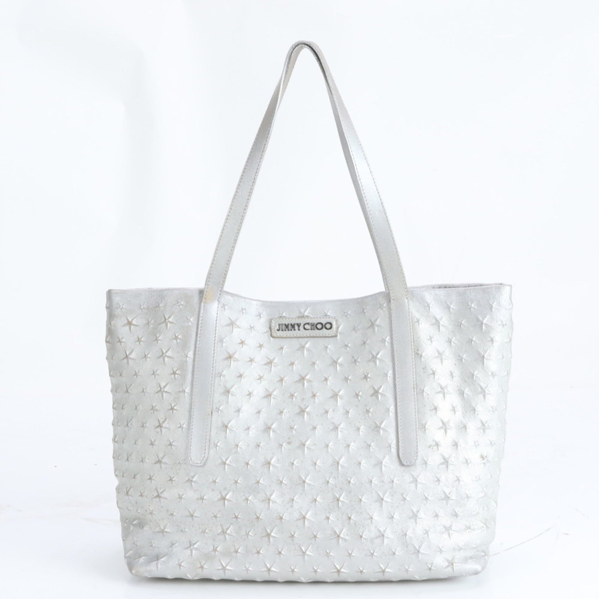 Jimmy Choo Sophia Star Embossed Leather Tote Bag Shoulder Handbag Silver Women\'s