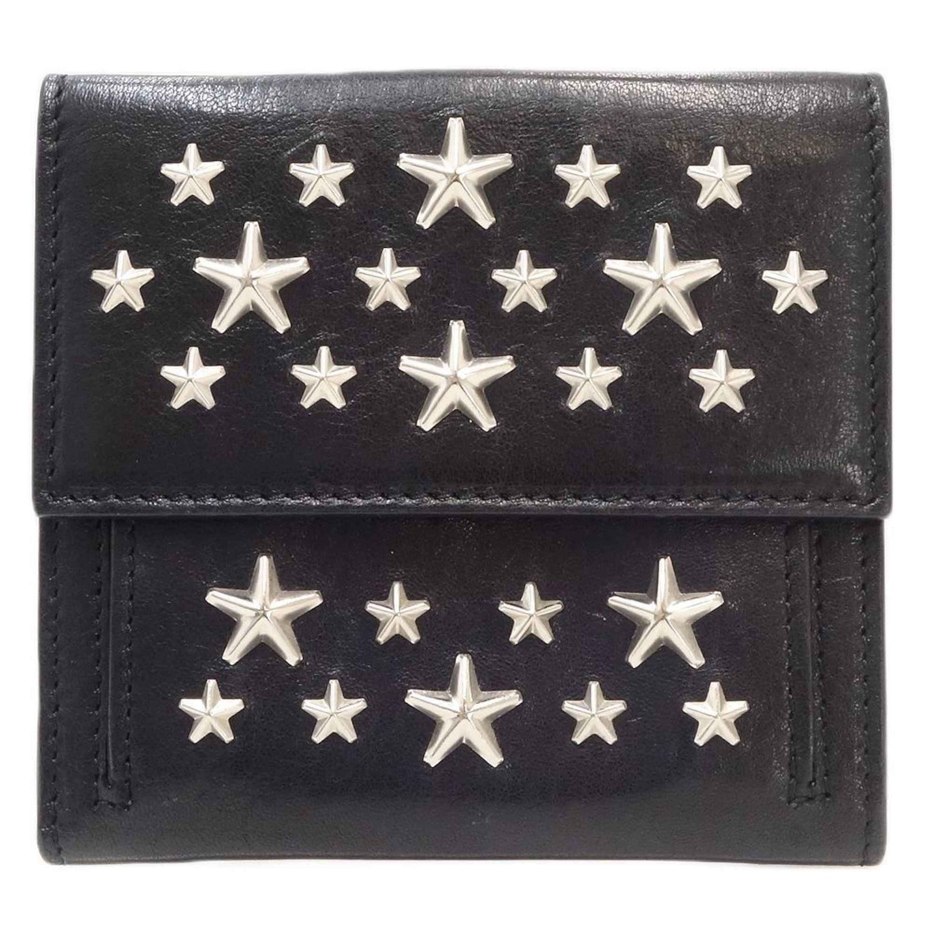 Jimmy Choo Star Studded Frida Bifold Wallet Leather Black 083683