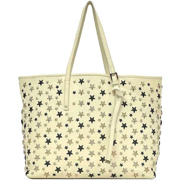 Jimmy Choo Tote Bag Sophia ec-22763 Cream White Leather Studs JIMMY CHOO Star Women Men A4