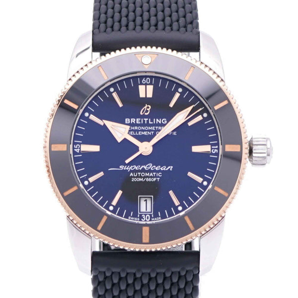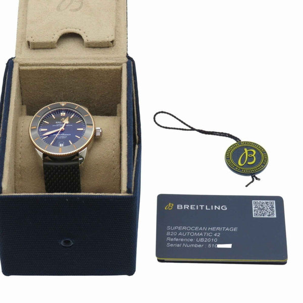 Like new Breitling Superocean Heritage B20 UB2010 automatic watch in stainless steel/rubber with gold-plated case and black dial (0174BREITLING) for men.