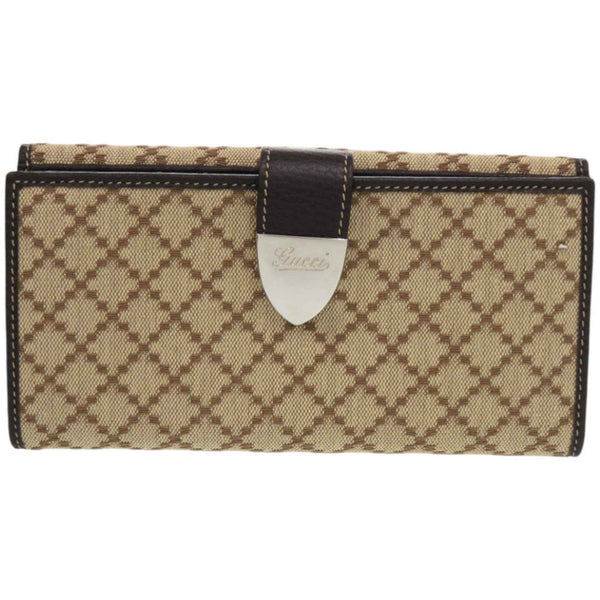 Like new Gucci Diamante 231837 canvas and leather long wallet with silver hardware in brown (0398)