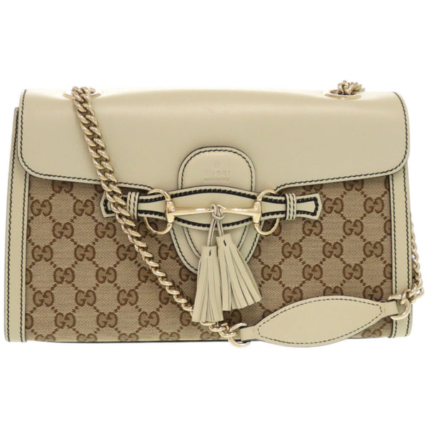 Like new Gucci Emily Horsebit GG canvas and leather shoulder bag, size 295402 (520931), white. 0526. GUCCI