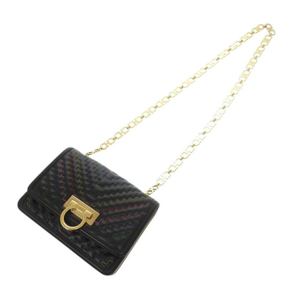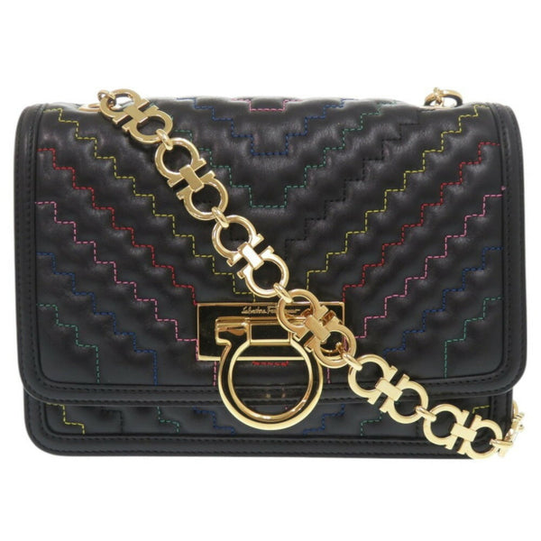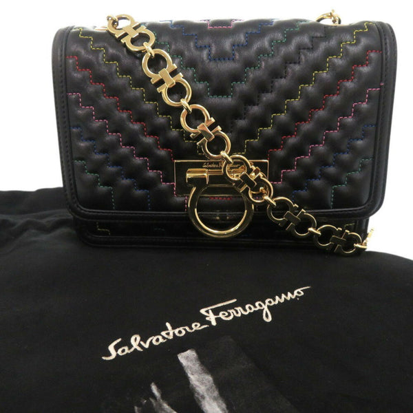 Like new Salvatore Ferragamo Gancini Leather Multicolor Chain Shoulder Bag 1155Salvatore