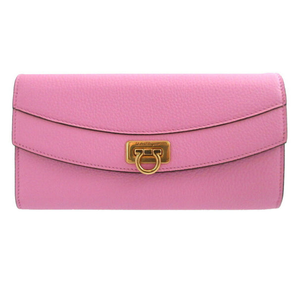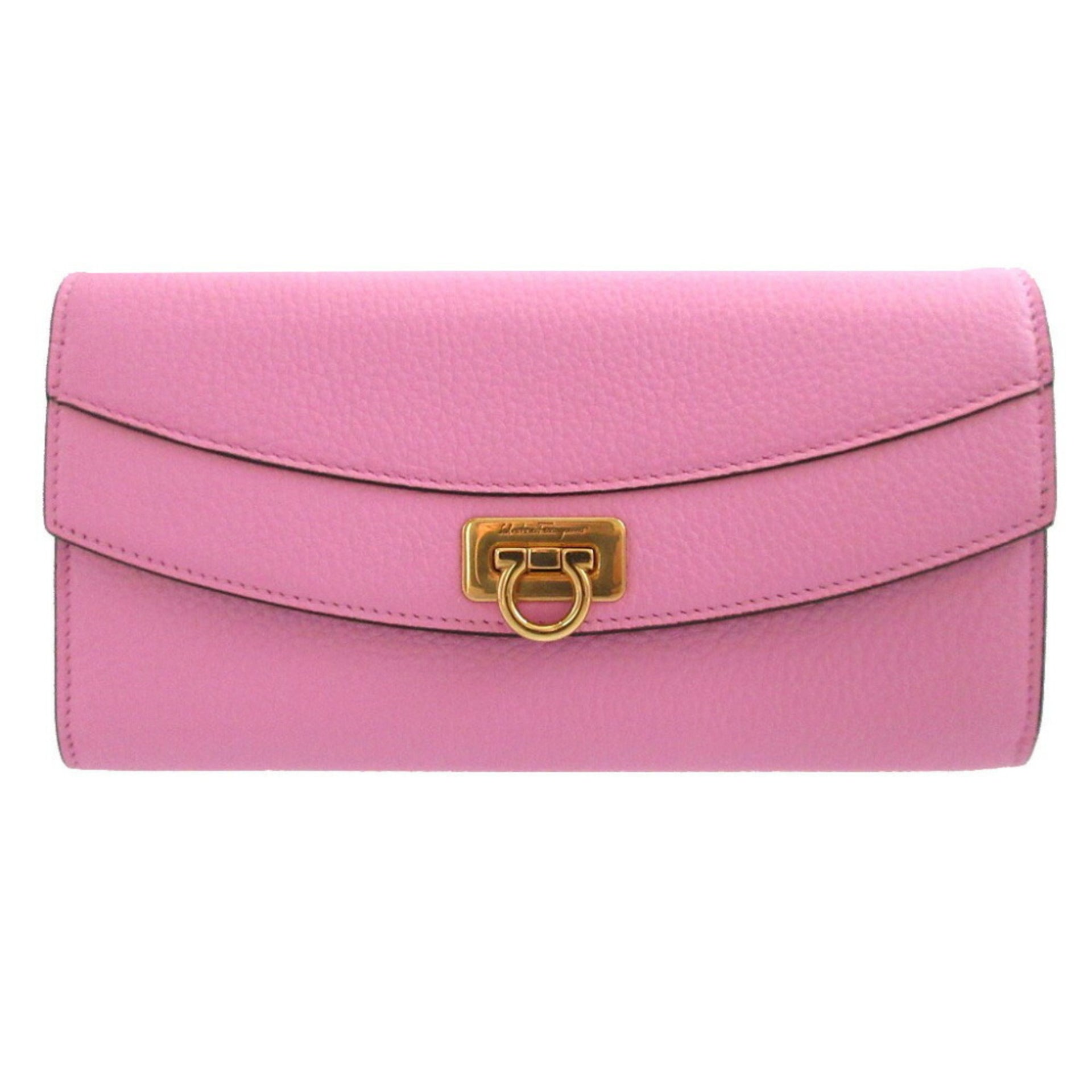Like new Salvatore Ferragamo Gancini leather pink bi-fold long wallet 0504Salvatore