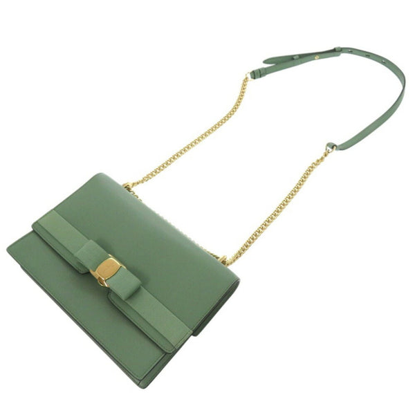 Like new Salvatore Ferragamo Vara VARA chain shoulder bag ribbon leather green 1156Salvatore
