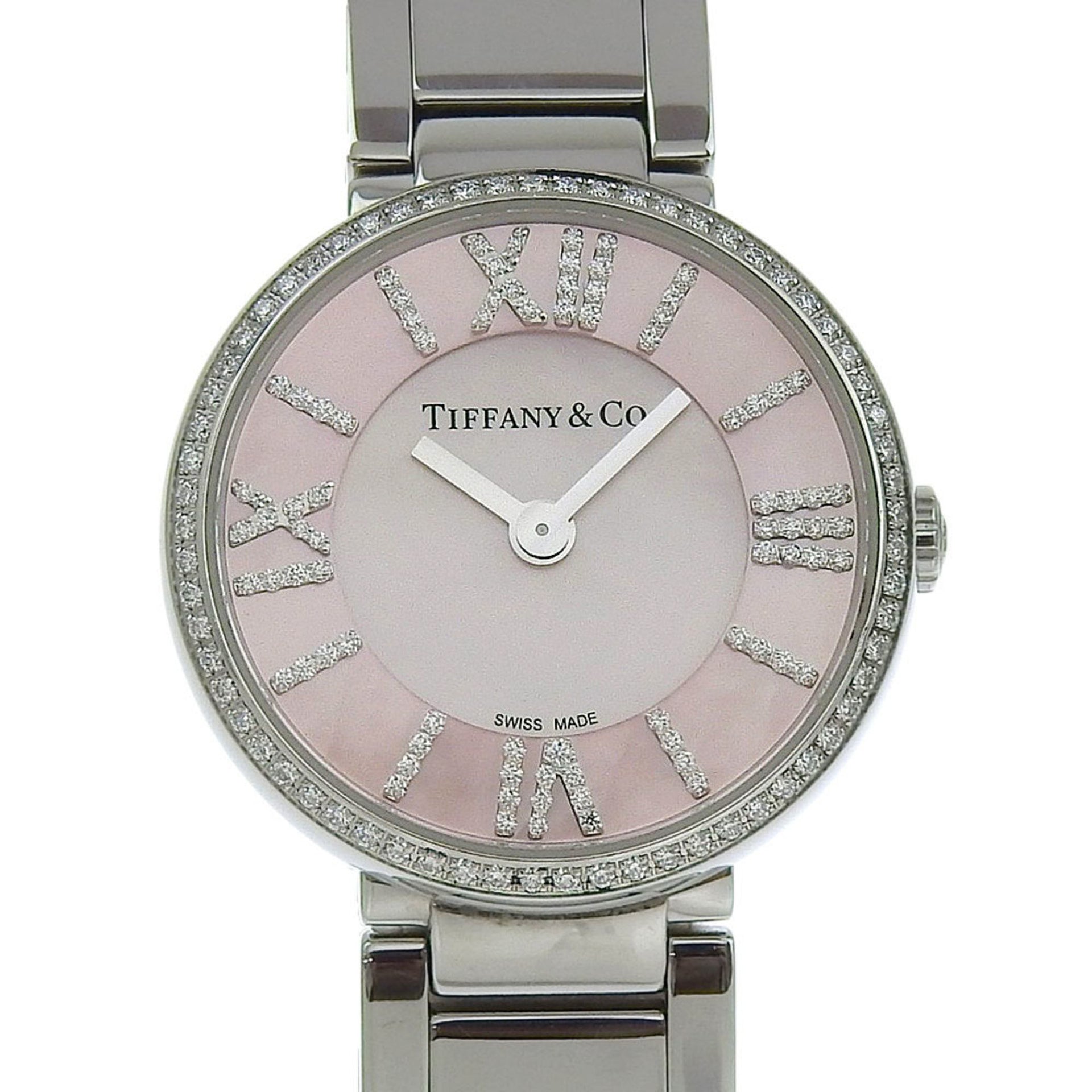 Like new Tiffany & Co. Atlas 6929161, pink shell dial, diamond bezel, indexes, stainless steel