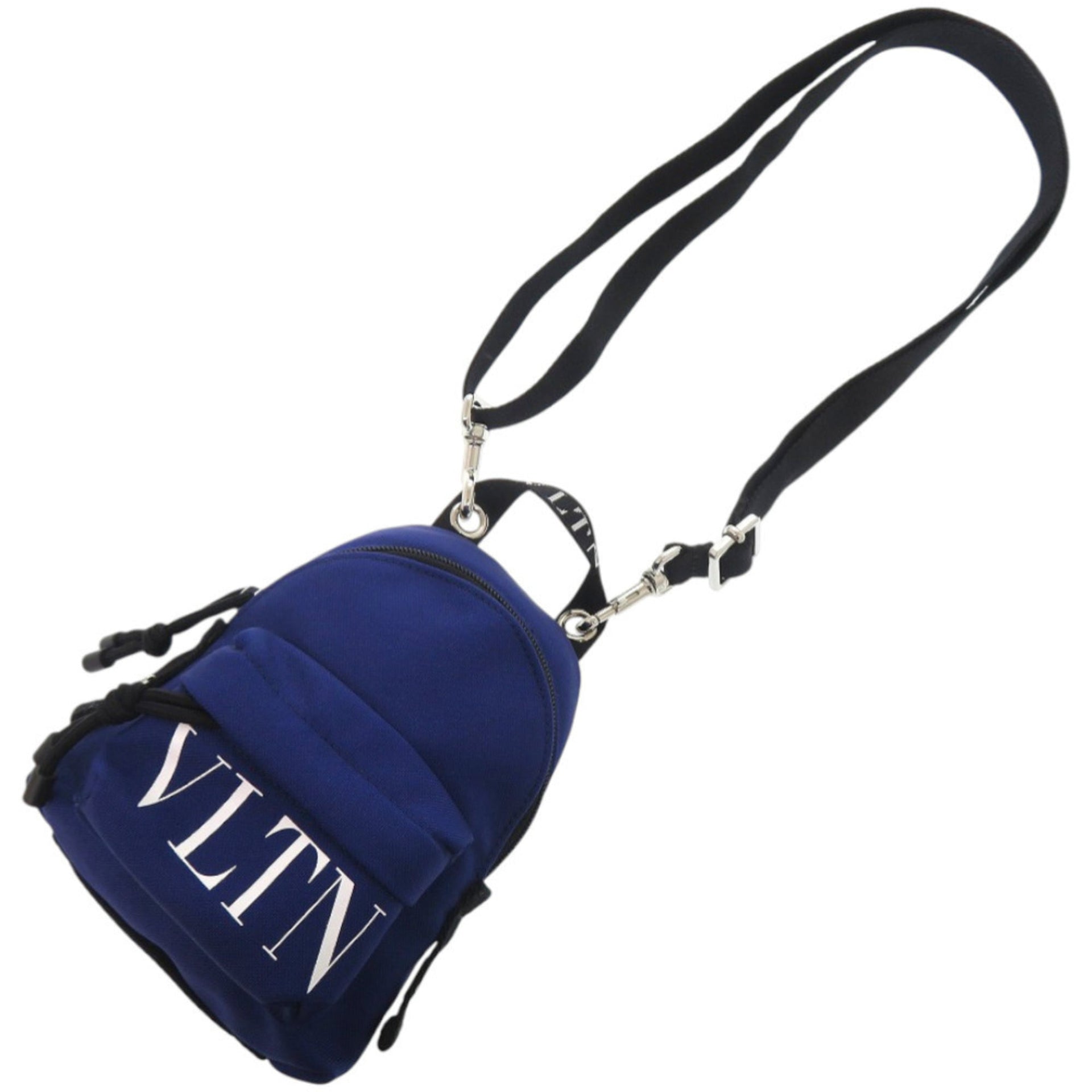 Like new Valentino Garavani Mini Backpack with VLTN logo, 2Y2B0A11YHS, blue nylon shoulder bag, 0548.