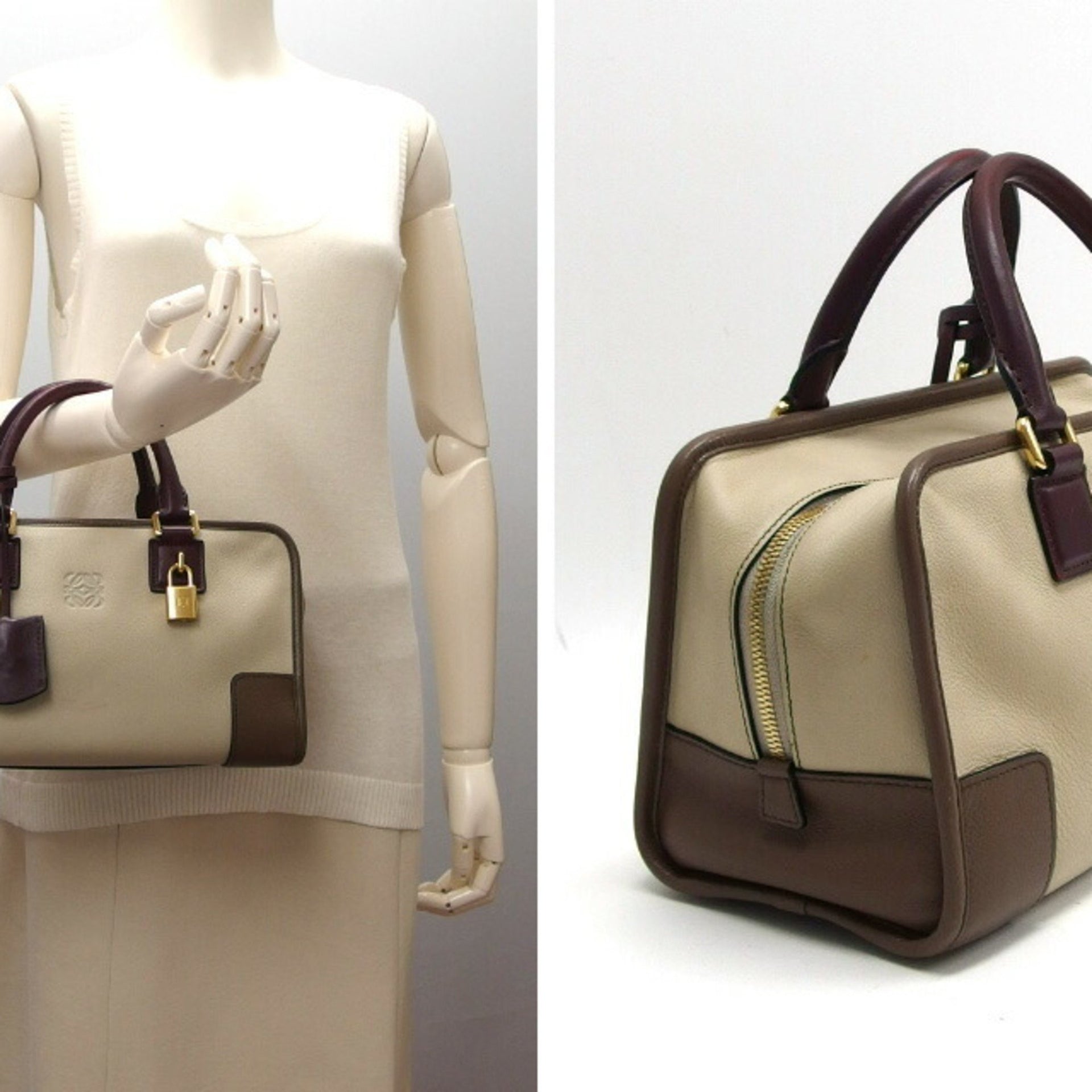 Loewe Amazona 28 Handbag, Anagram, Three-Color, Beige