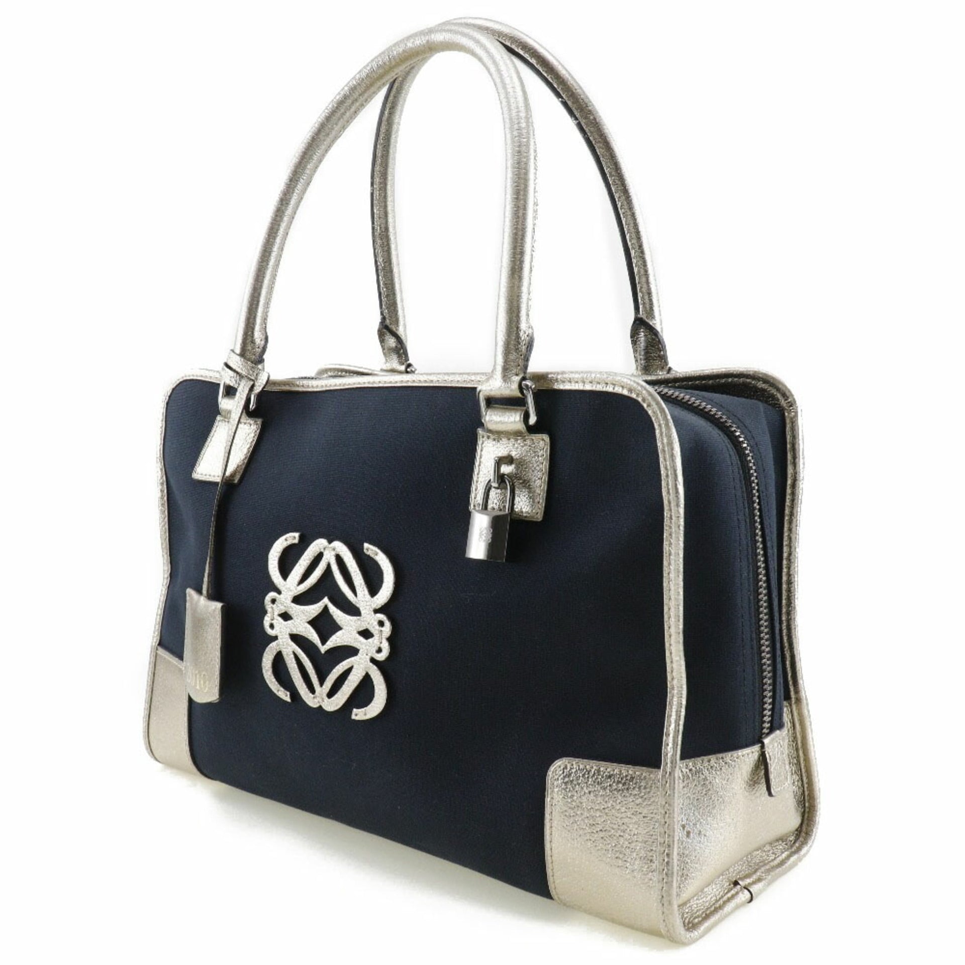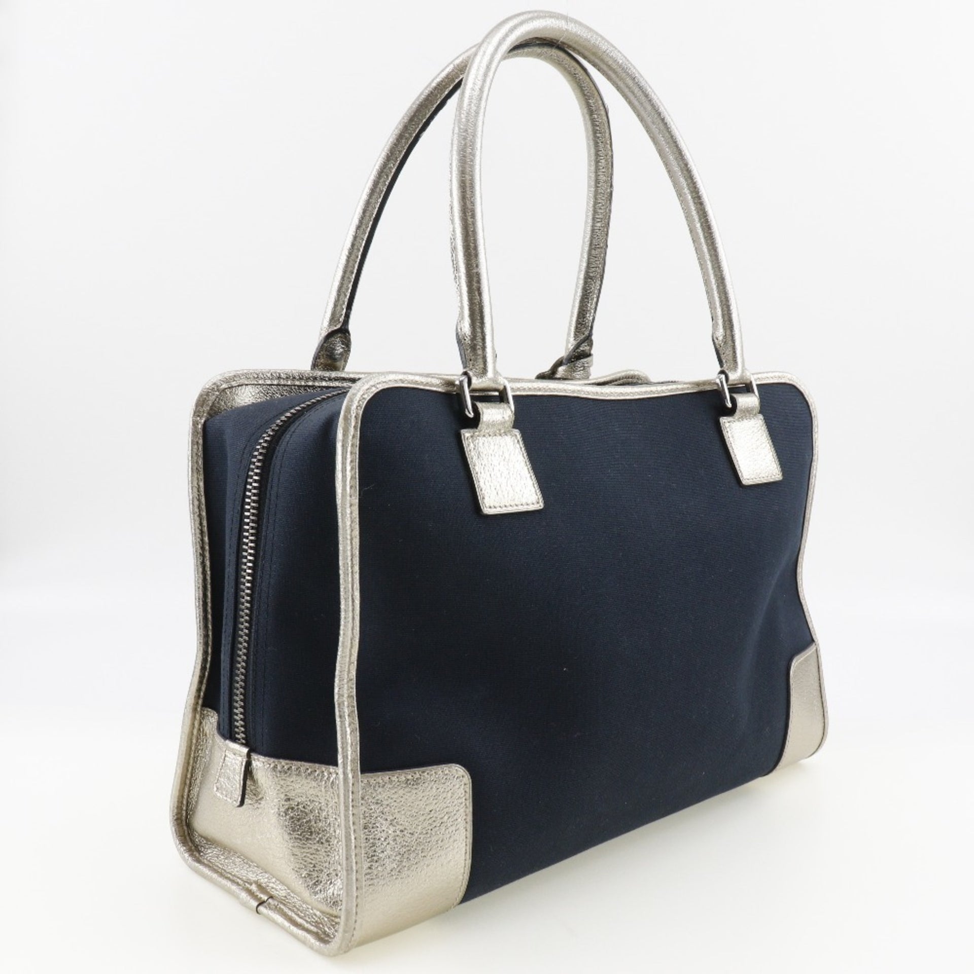 Loewe Amazona 36 Boston Bag 2010 Canvas x Leather Navy Blue Women\'s Handbag