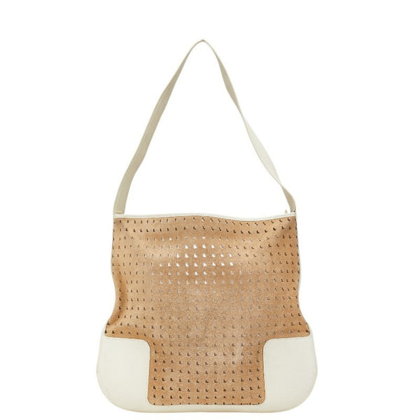 LOEWE Anagram Punching One-Shoulder Bag in Brown and White Leather Suede for Women