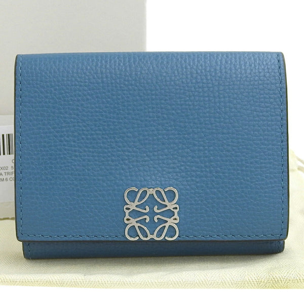 LOEWE Anagram Trifold Wallet C821TR2X02 Double Leather Lagoon Blue