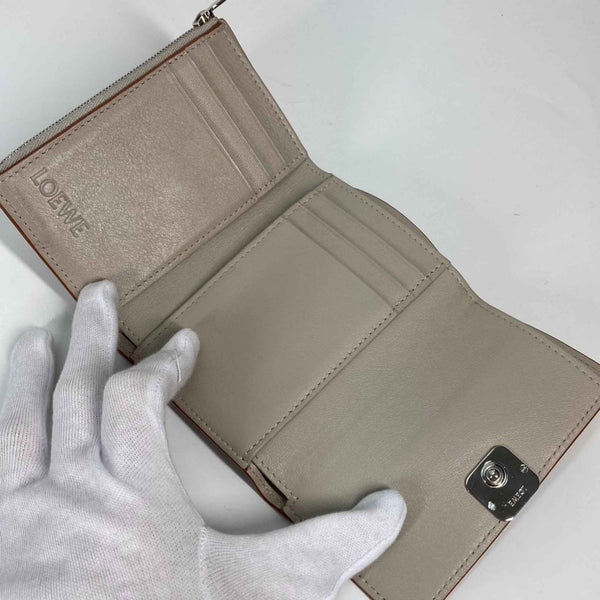 LOEWE Anagram Vertical Wallet C821S33X07 Small Compact Trifold Leather for Women in Light Ghost Beige