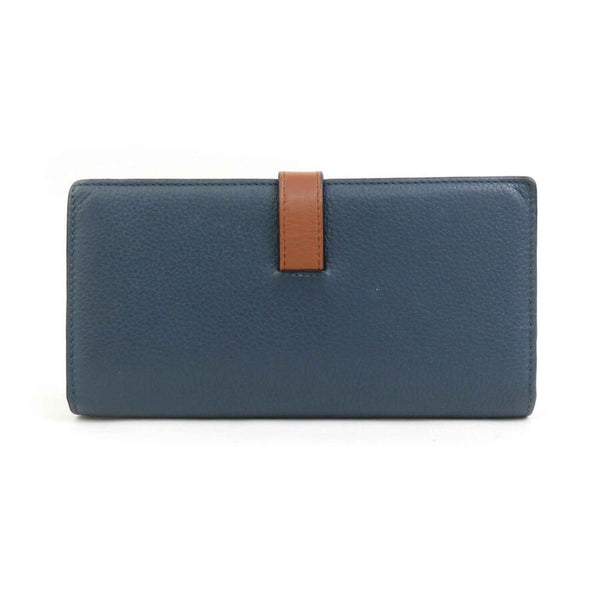 LOEWE Bi-fold Long Wallet Leather Navy x Brown Men's Women's h31622a
