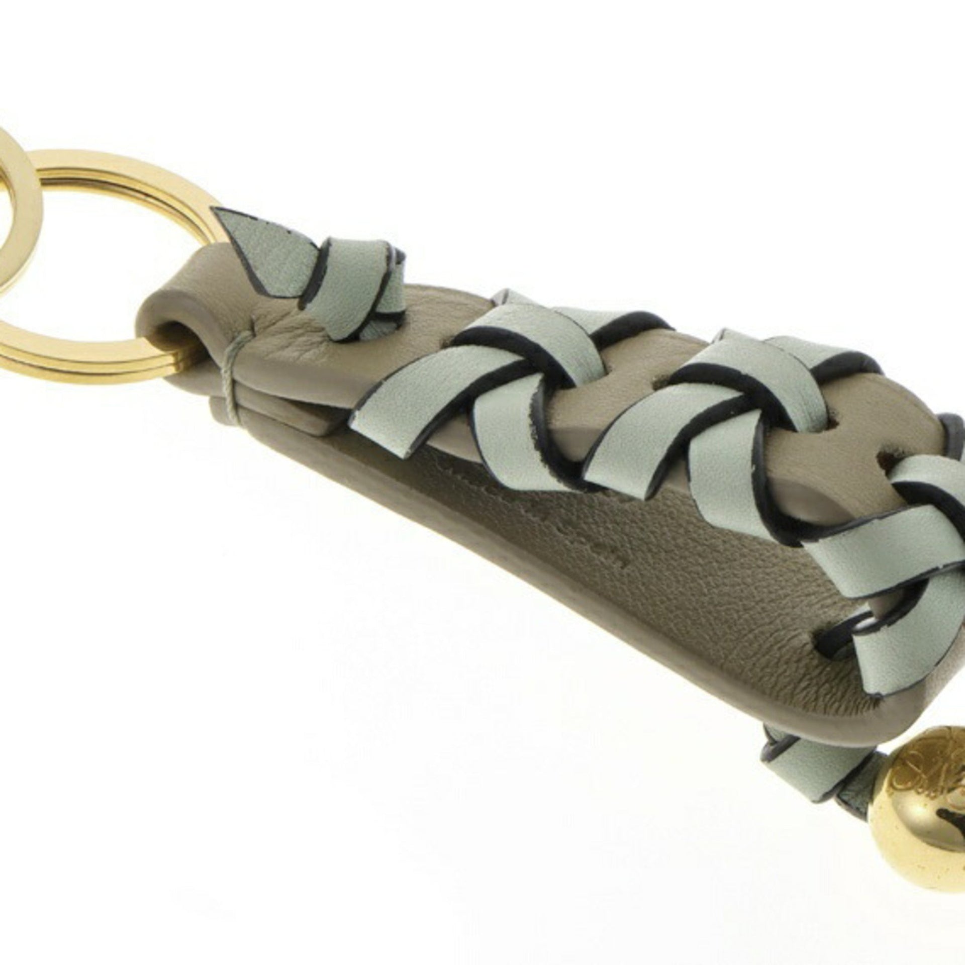 LOEWE Cross Braided Key Ring Keychain C621231X04 Classic Calfskin Greige S-159110