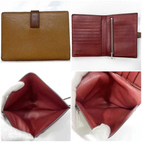 LOEWE Medium Vertical Wallet ec-23635 Camel Brown Anagram C660S87X01 Leather Folding 061850 Grained Two-Tone Men's and Women's