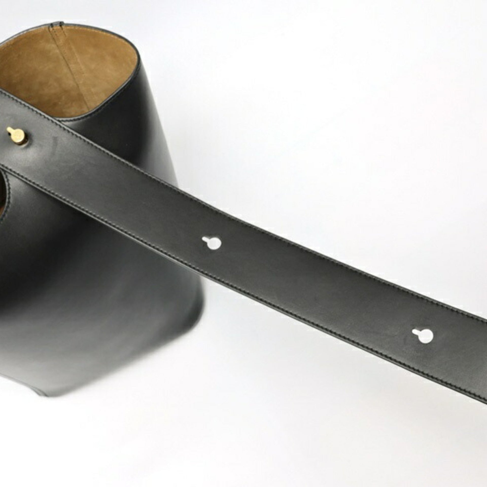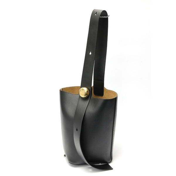 LOEWE Pebble Bucket Bag Medium Shoulder AANBBBWX01 Smooth Calf Leather Black S-158685