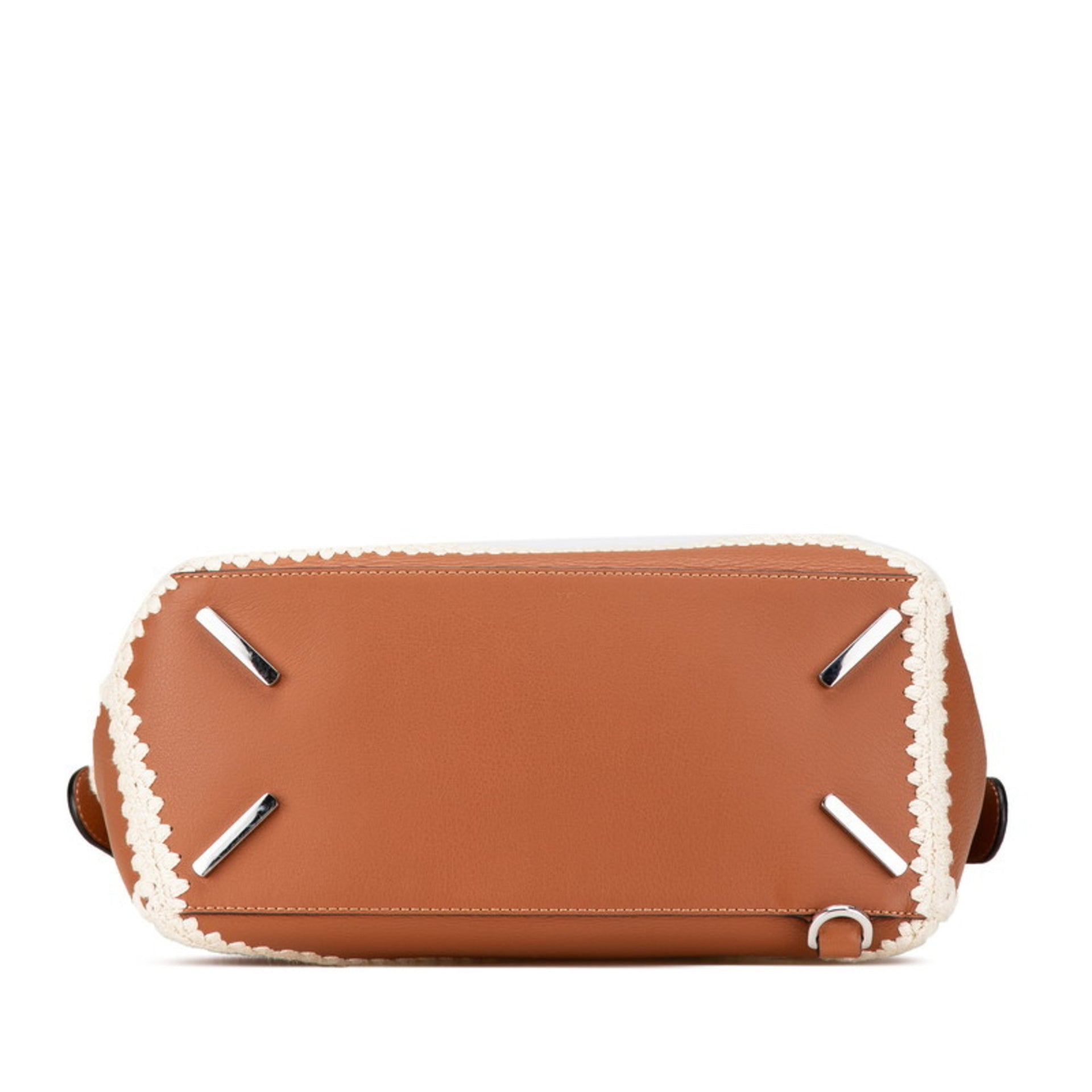 LOEWE Puzzle Bag Medium Handbag Shoulder 2WAY Brown White Leather Women\'s