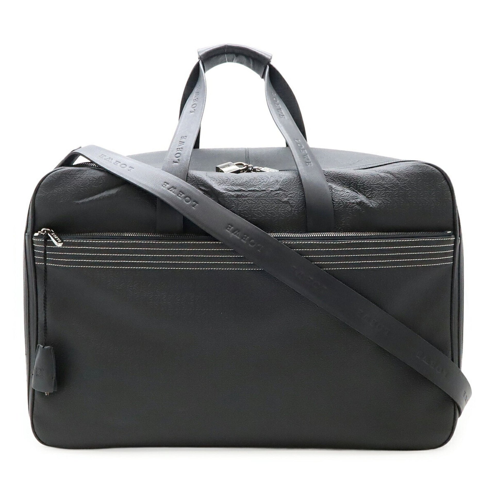 LOEWE Repeat Anagram Boston Bag, Travel Shoulder Embossed PVC Leather, Black