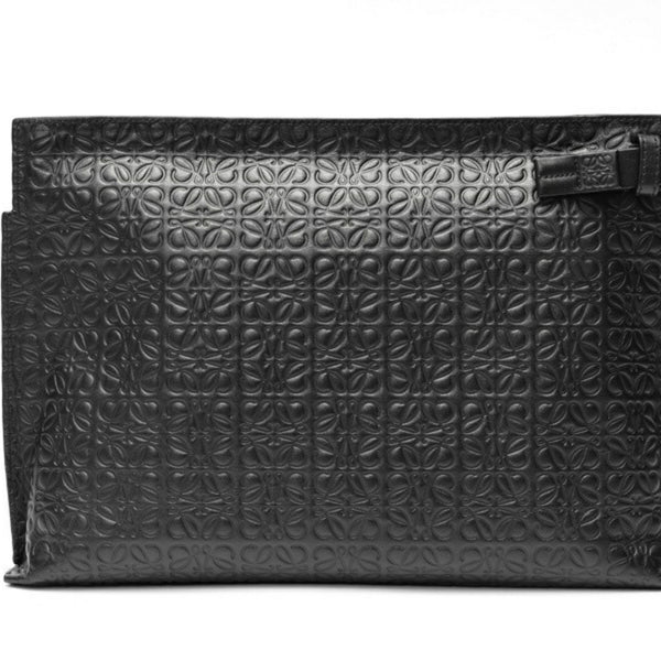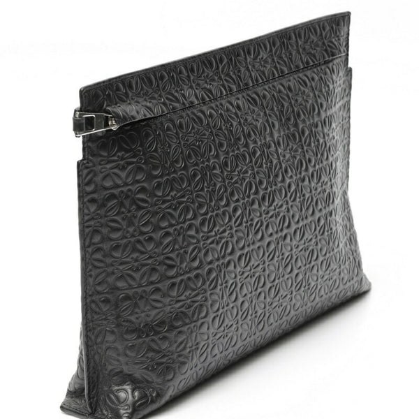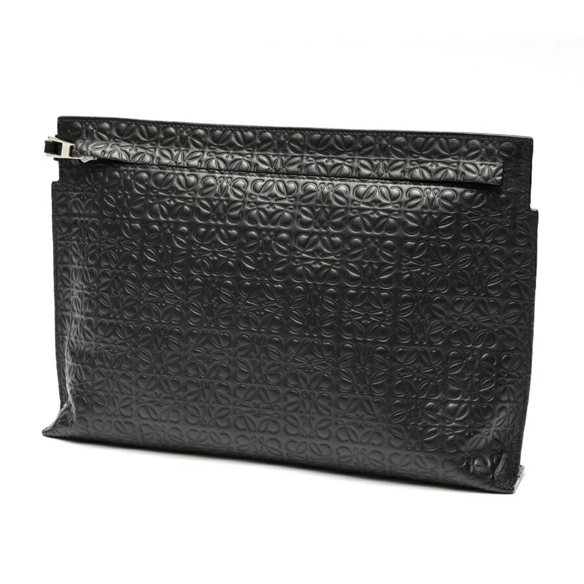LOEWE Repeat Anagram T Pouch Clutch Bag Leather Black E-158665