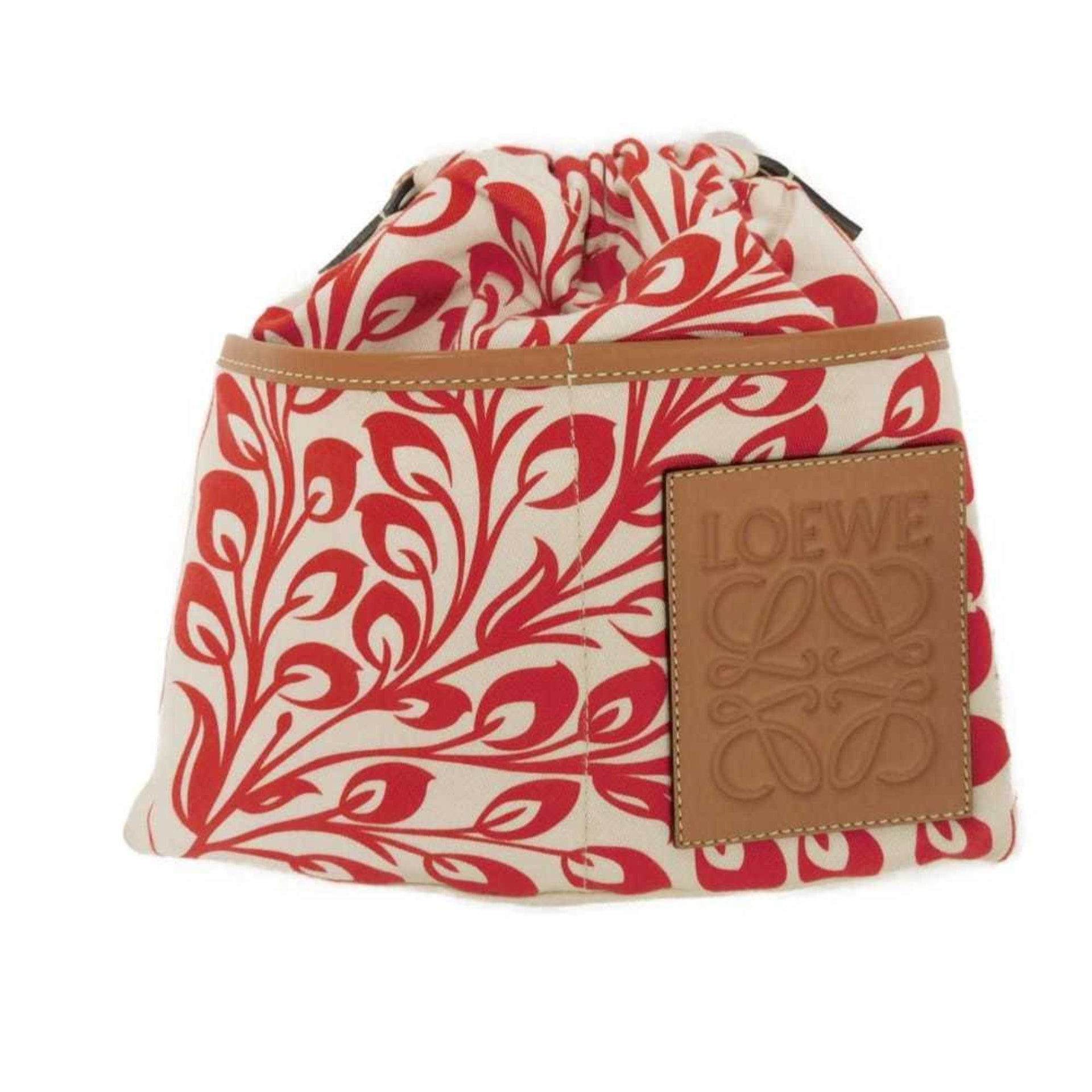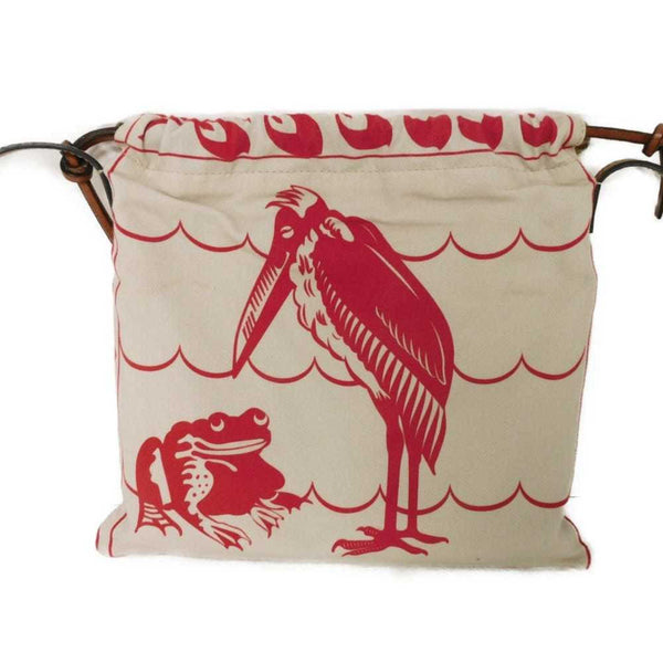 LOEWE Shoulder Bag Drawstring Pochette Anagram Bird Frog Red William de Morgan Natural 303.49.W11 Men\'s Women\'s