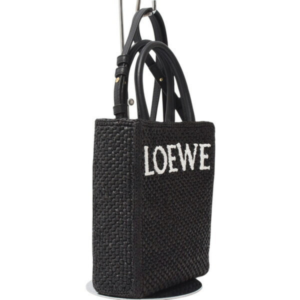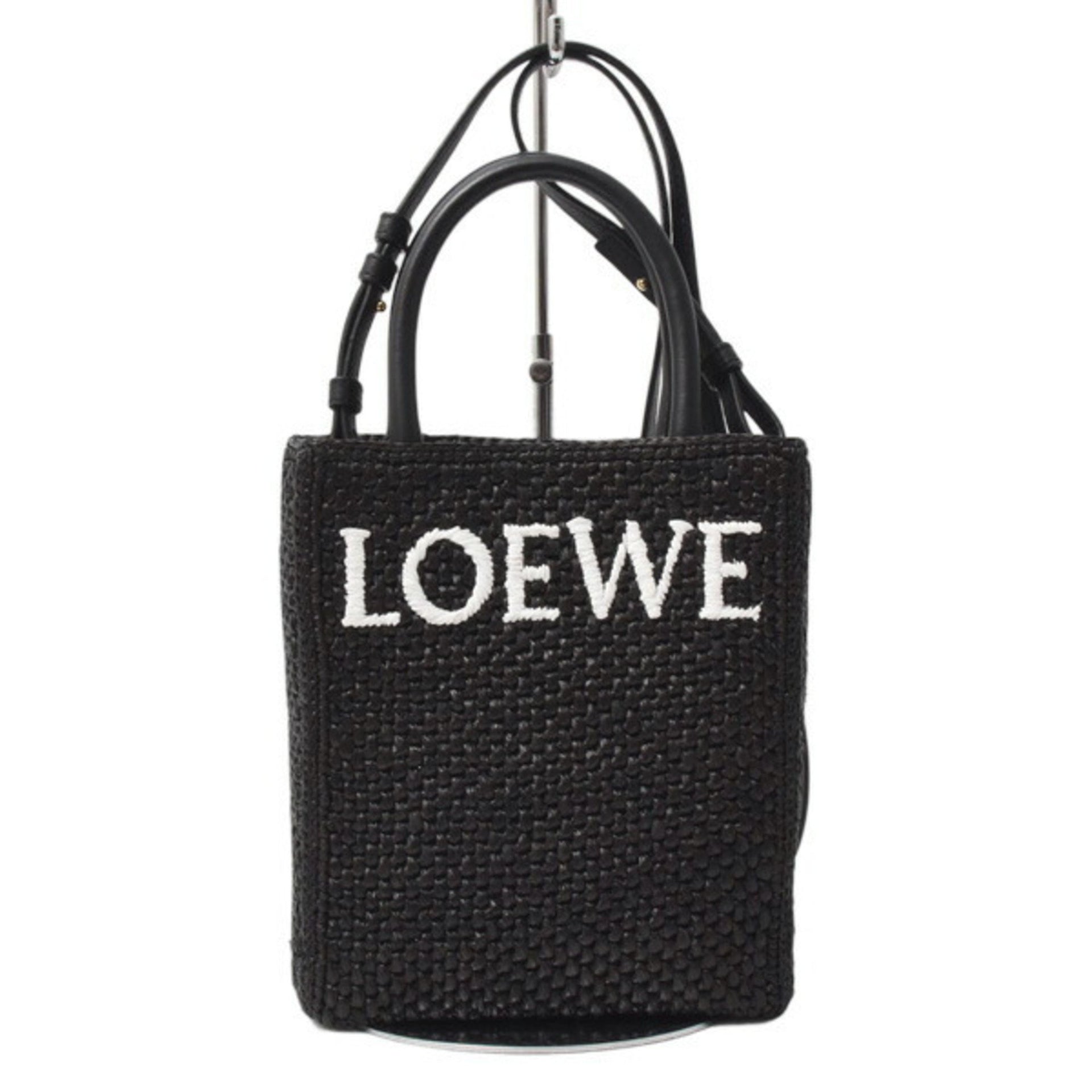 Loewe Women\'s Standard A5 Tote Bag in Raffia and Leather, Black, LOEWE A563S30X09