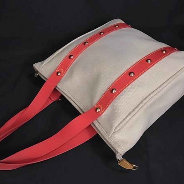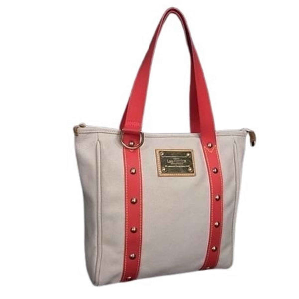 LOUIS VUITTON Antigua Cabas MM Tote Bag M40035 Beige and Red Canvas Leather for Women