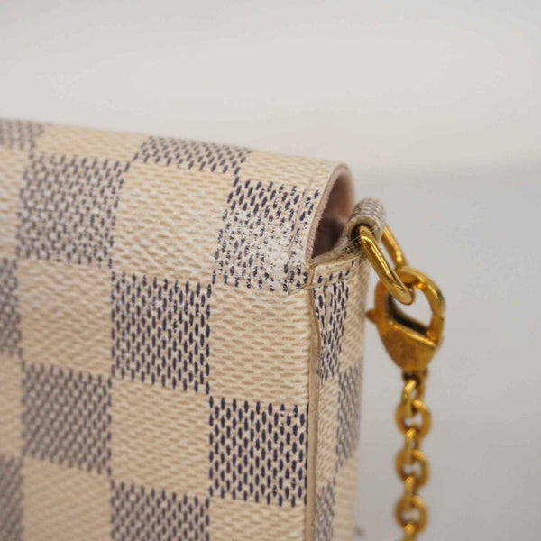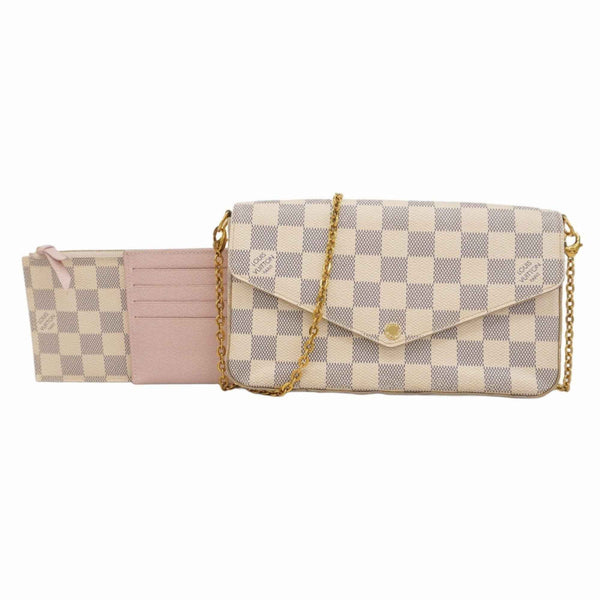 Louis Vuitton Damier Azur Pochette Felicie Shoulder Wallet N63106 White Rose Ballerine for Women