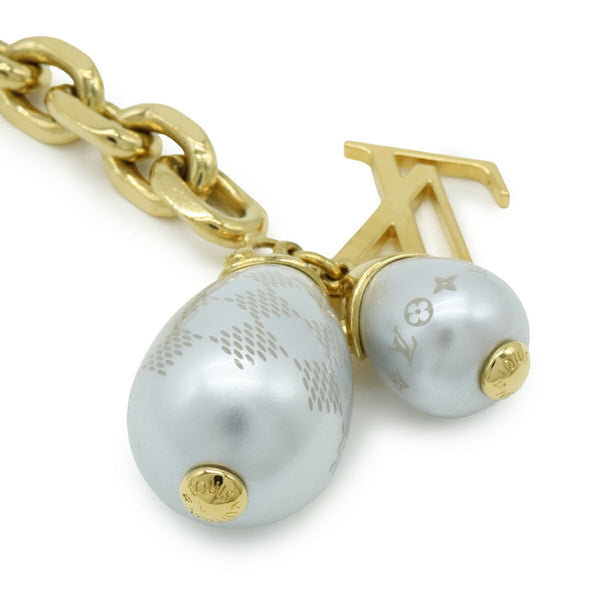 LOUIS VUITTON Damier Pearl LV Chain Bracelet in GP with Faux Pearls and Gold, M66319