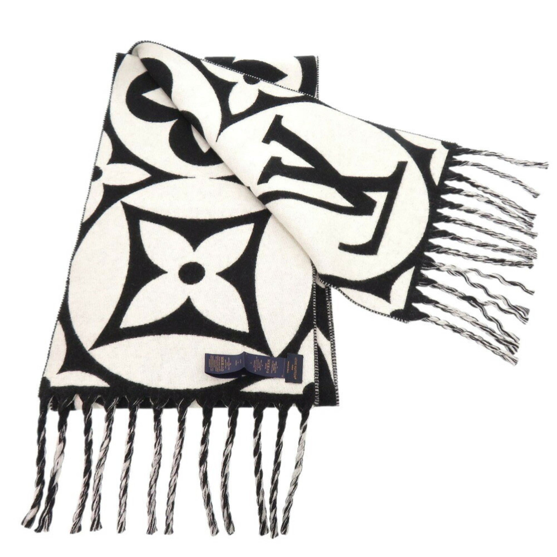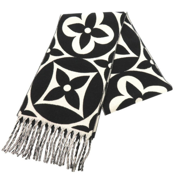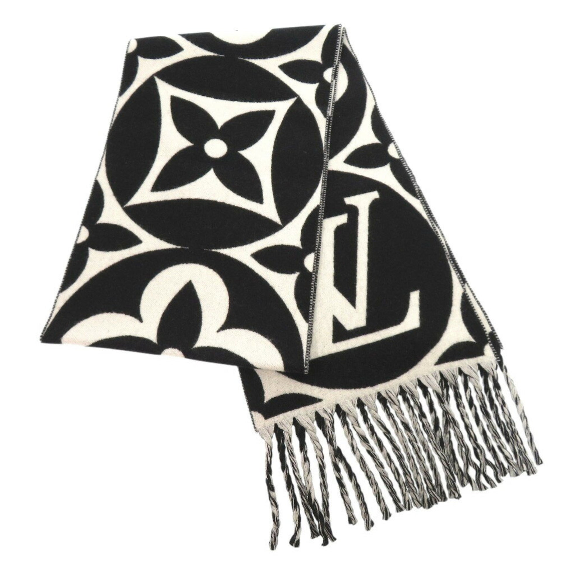 Louis Vuitton Flight Mode Medallion M79212 Wool Black White Scarf 1094LOUIS VUITTON