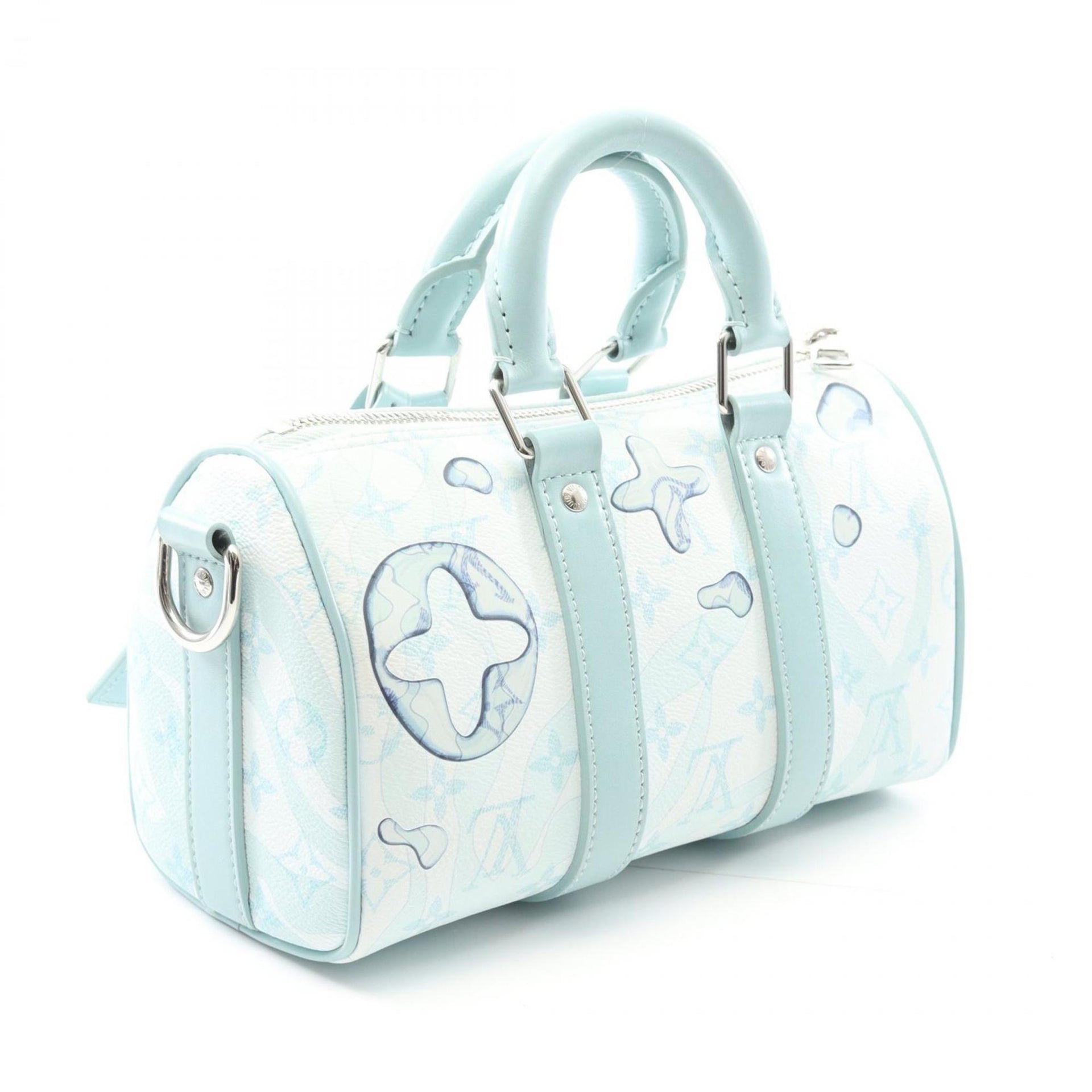 Louis Vuitton Keepall Bandouliere 25 Handbag in Coated Canvas with Monogram Aqua Garden Design, Blue, M22527