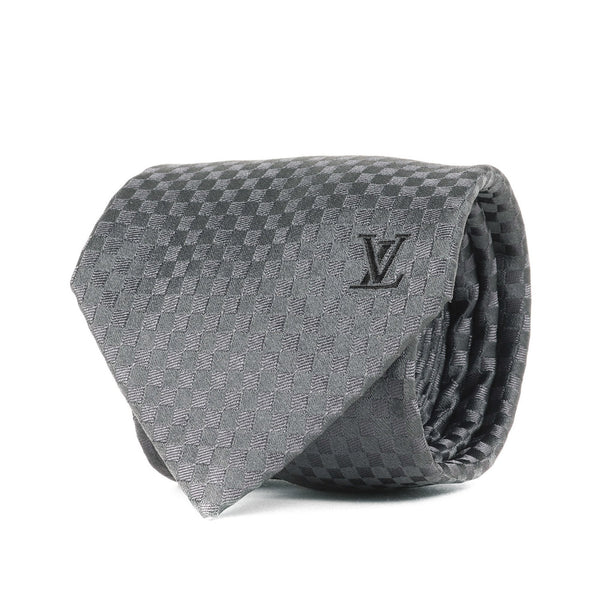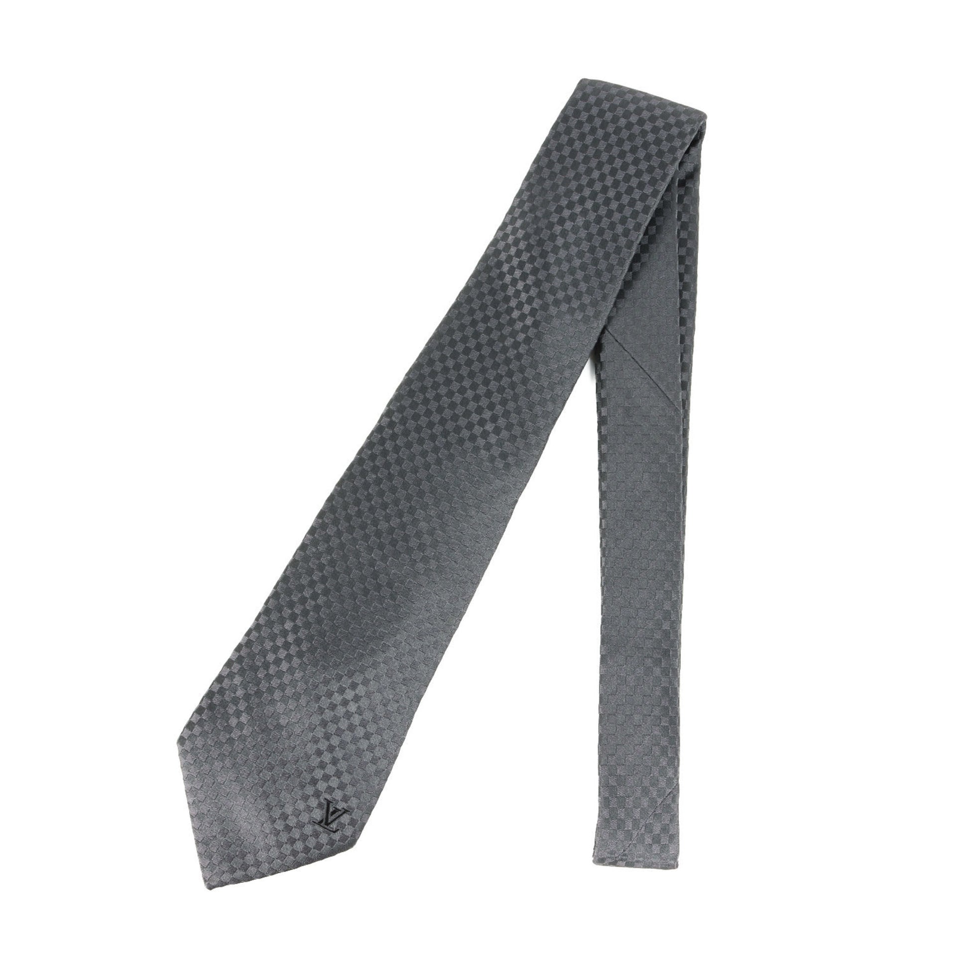 LOUIS VUITTON Louis Vuitton Micro Damier Silk Cravate Tie, Gray, Men\'s, K4613