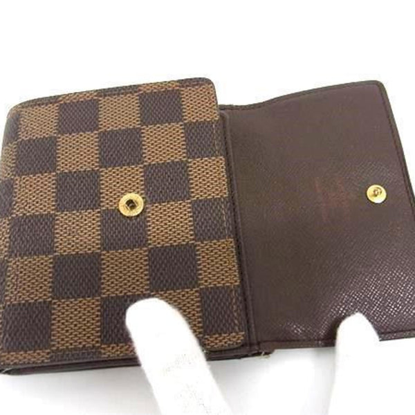 LOUIS VUITTON Louis Vuitton Wallet Portefeuille Elise N61654 Ebene (Brown) Damier Leather Women's Tri-fold