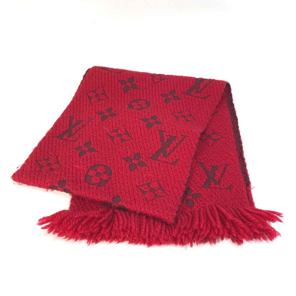 LOUIS VUITTON M72432 Echarpe Logo Mania Fringe Scarf, Wool/Silk, Women\'s, Red