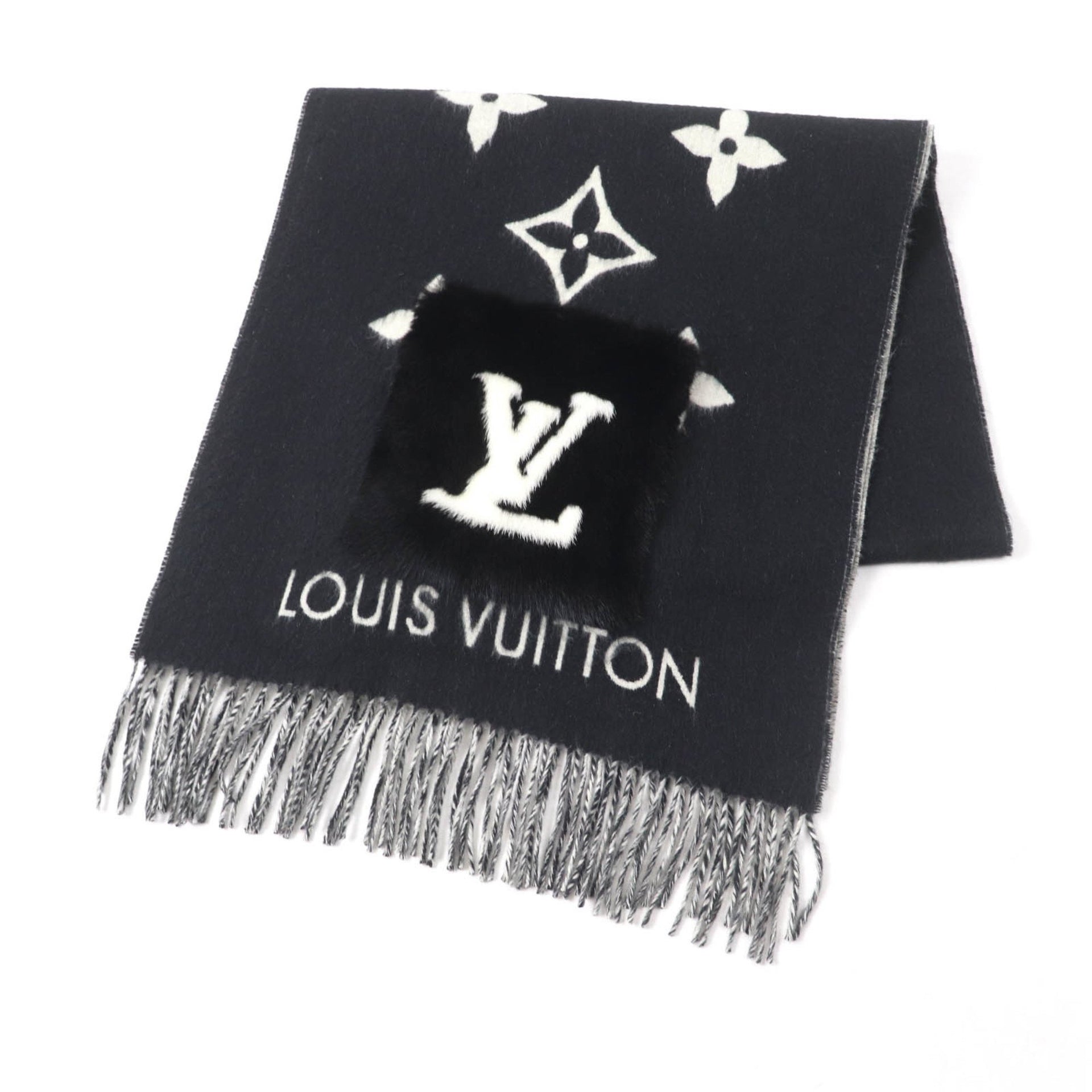 LOUIS VUITTON M74353 Cold Scarf, Reykjavik, 100% Cashmere, Noir, Mink Fur with Fringe, Women\'s